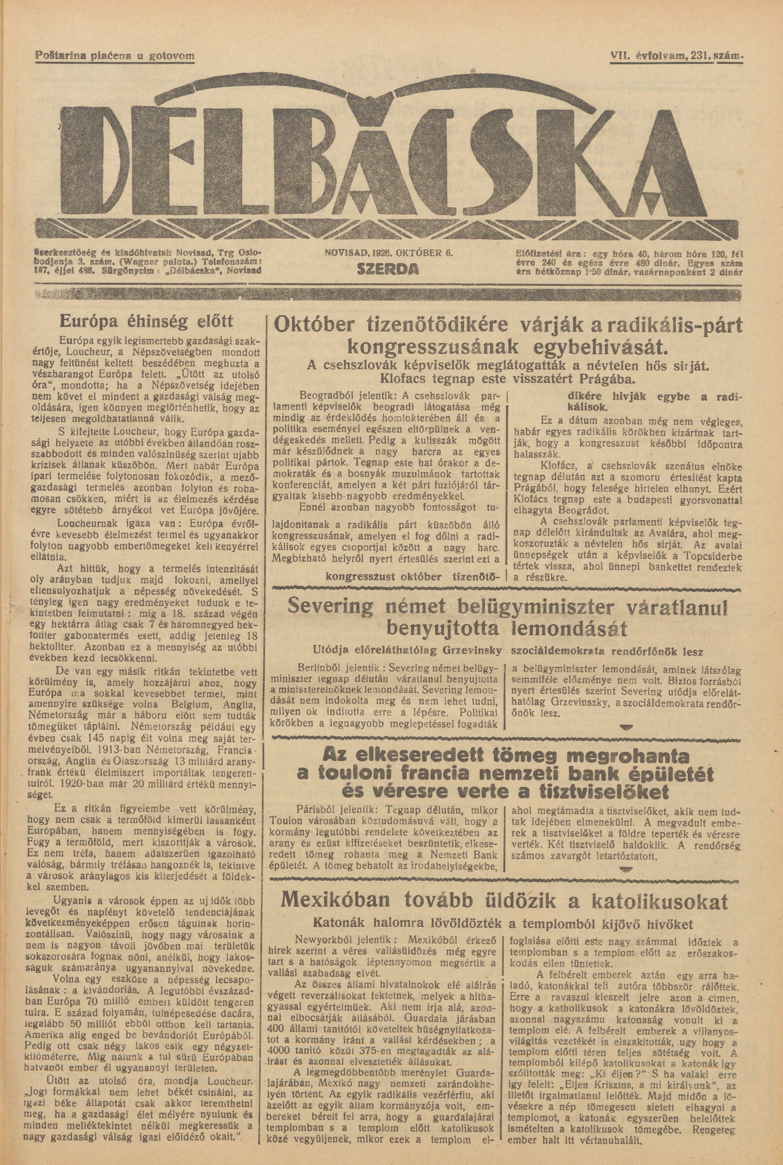 Délbácska, 7. évf. 1926. október 6. 231. sz.