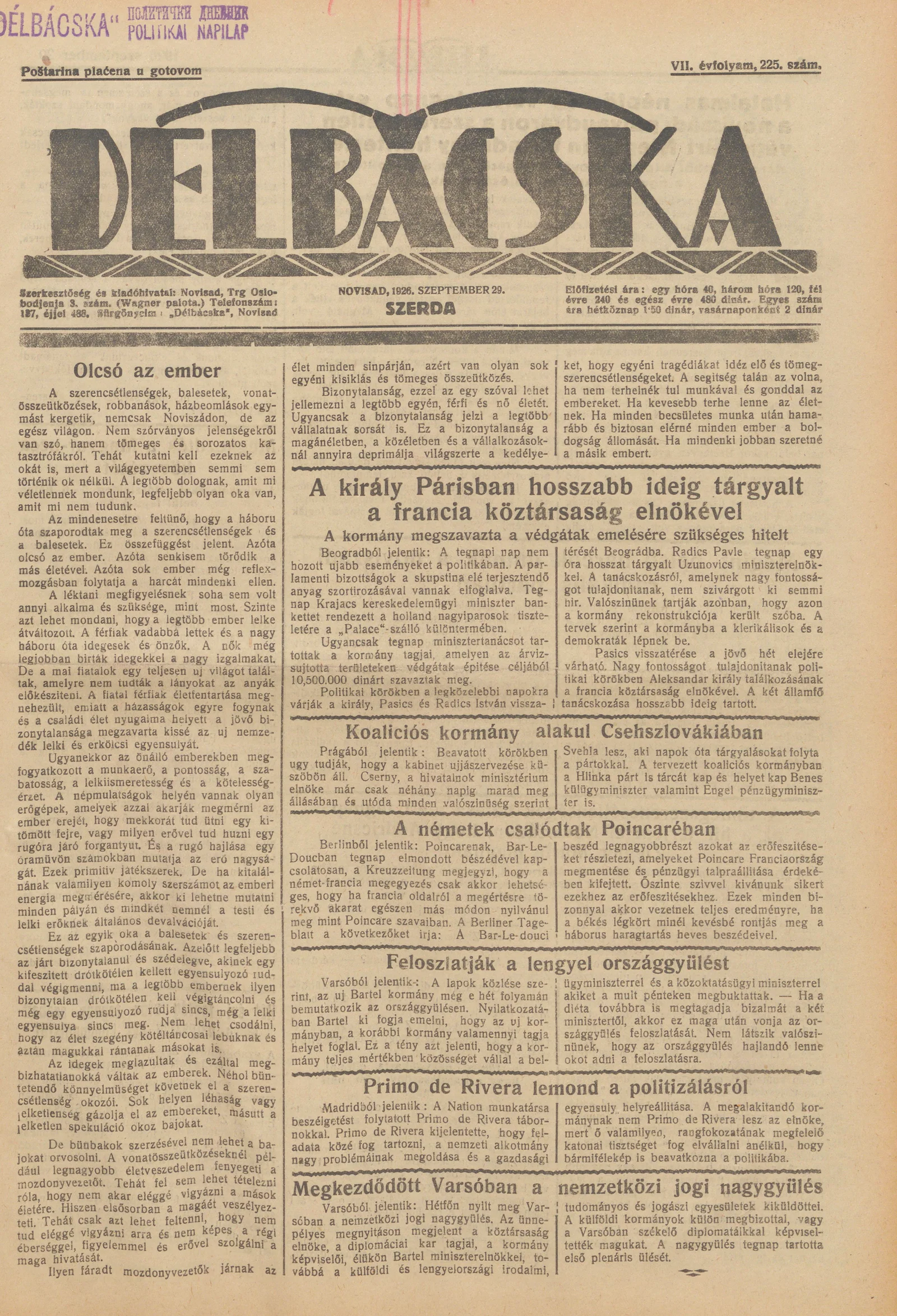 Délbácska, 7. évf. 1926. szeptember 29. 225. sz.