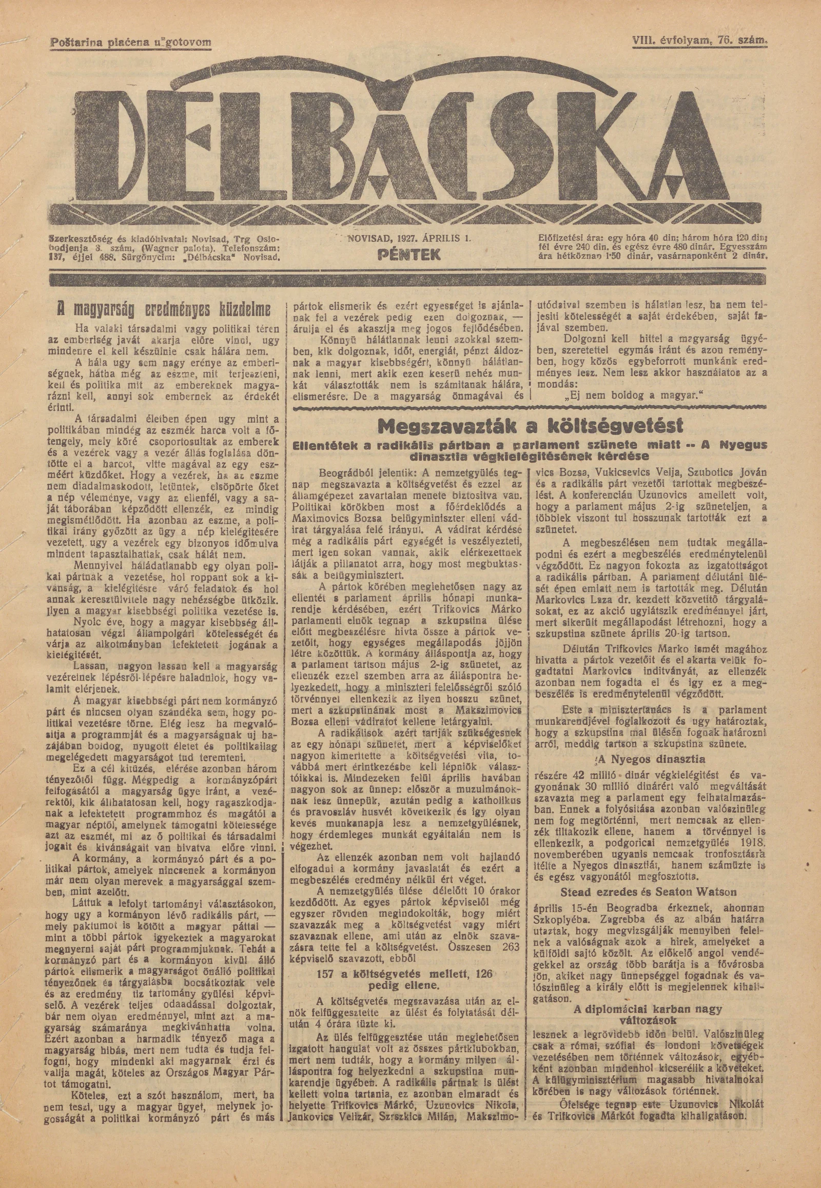 Délbácska, 8. évf. 1927. április 1. 76. sz.