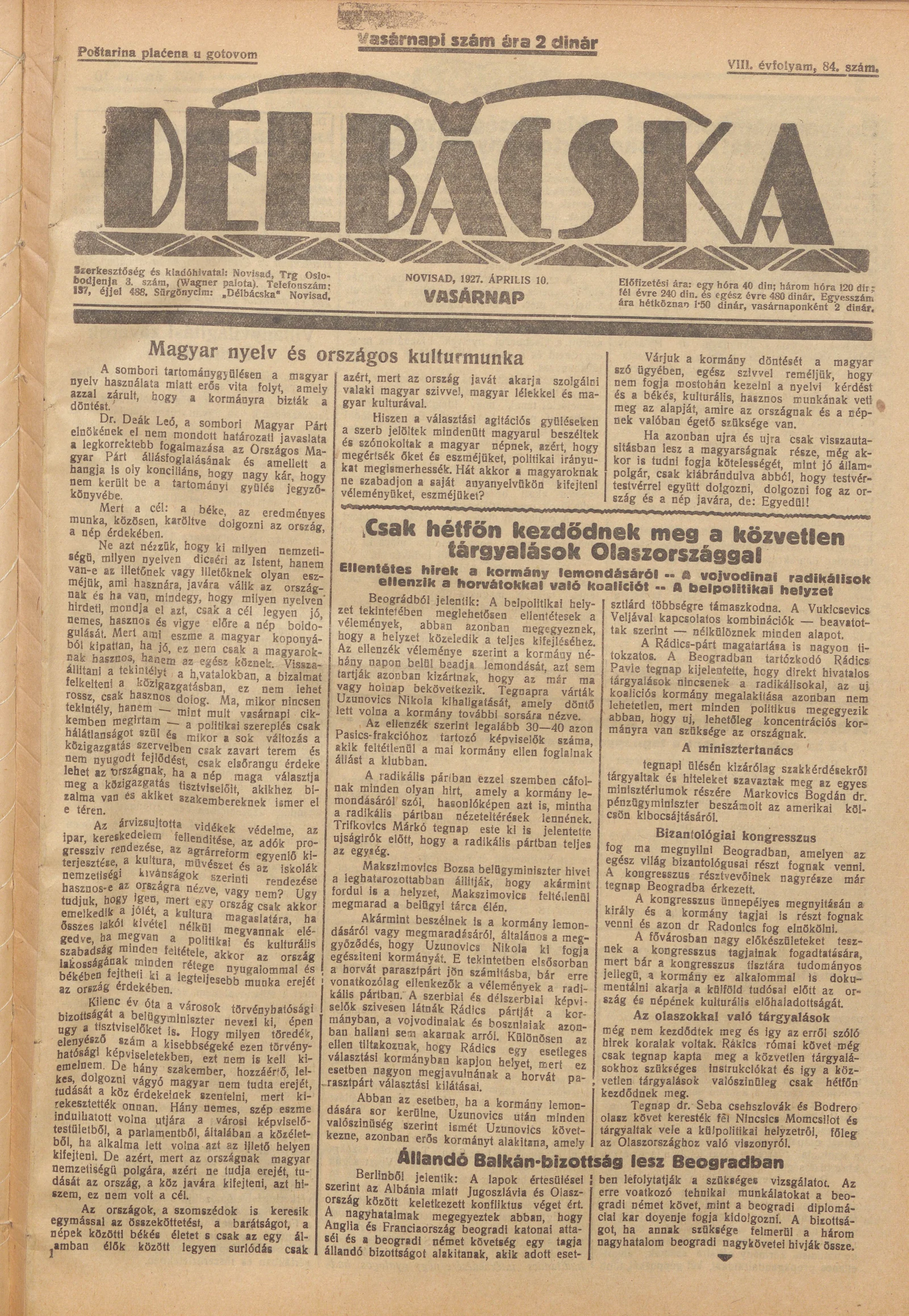 Délbácska, 8. évf. 1927. április 10. 84. sz.