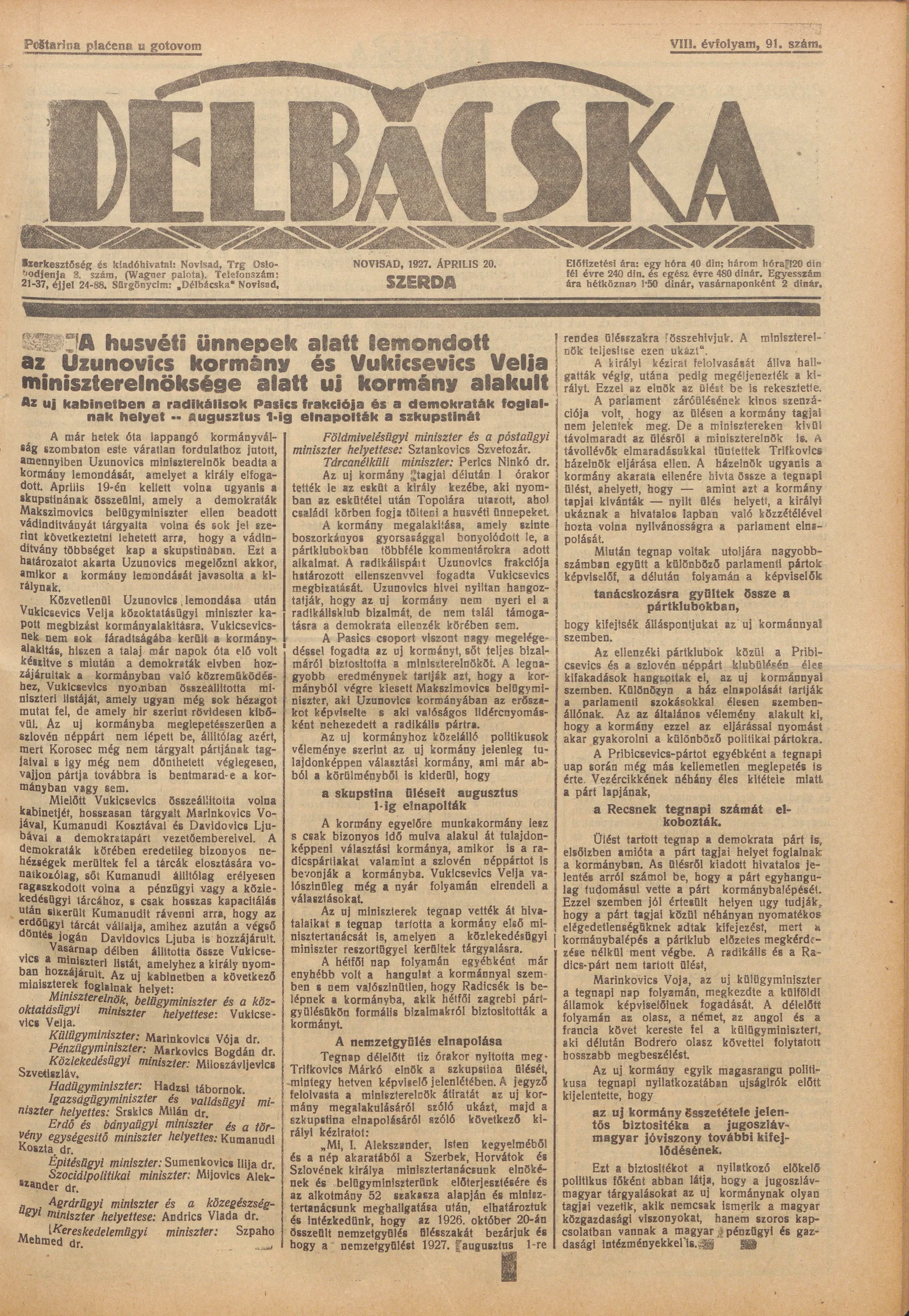Délbácska, 8. évf. 1927. április 20. 91. sz.