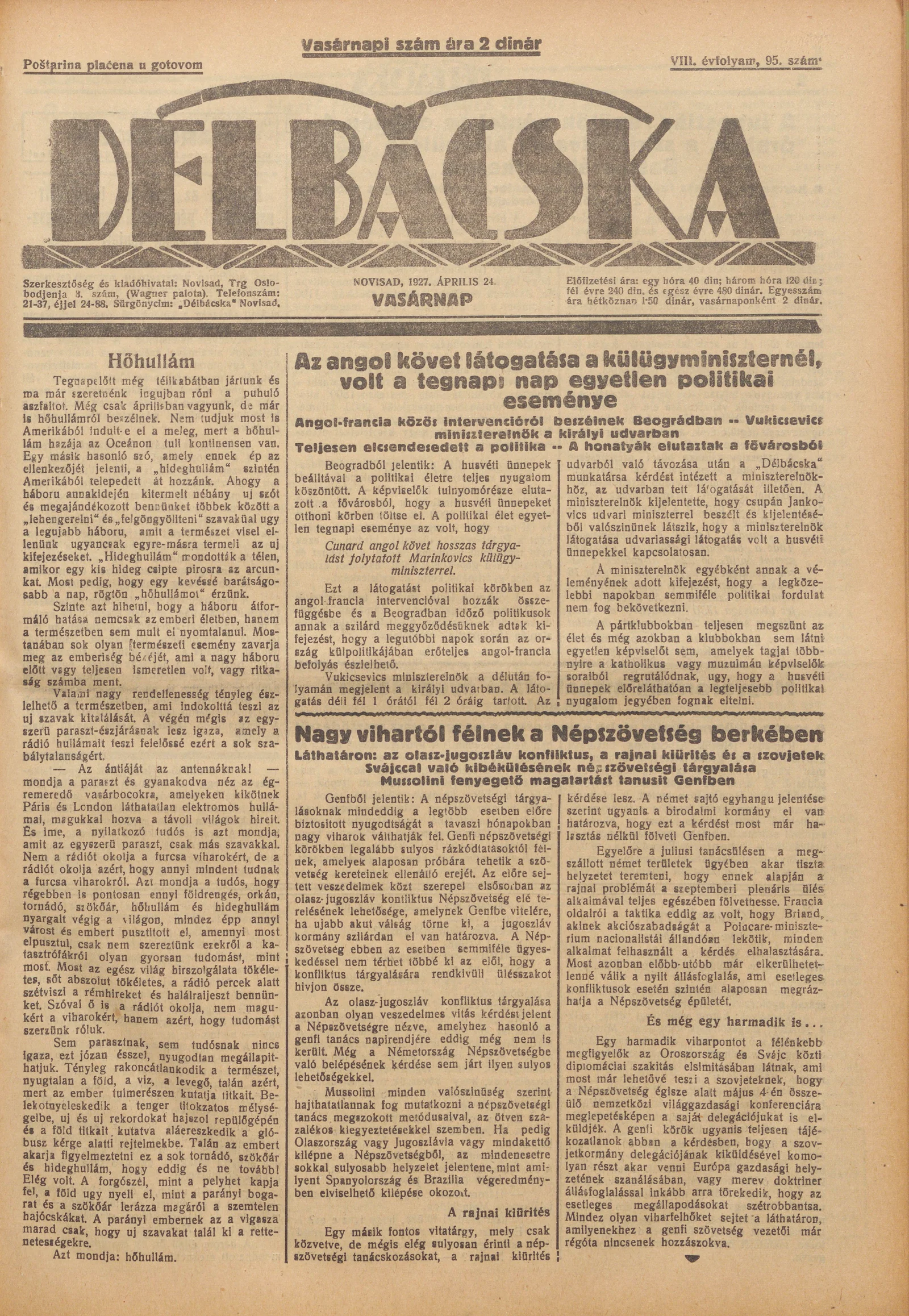 Délbácska, 8. évf. 1927. április 24. 95. sz.