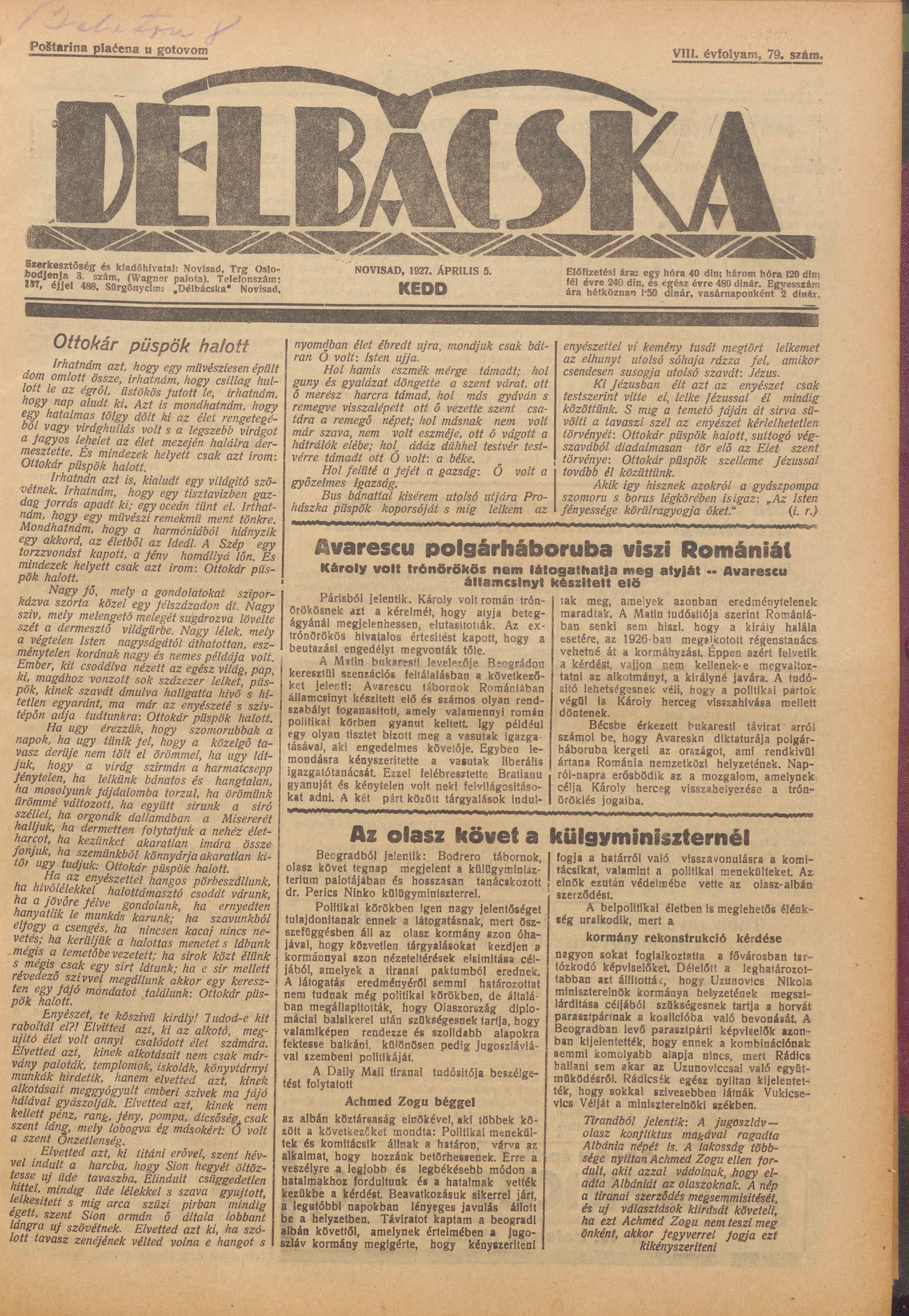 Délbácska, 8. évf. 1927. április 5. 79. sz.