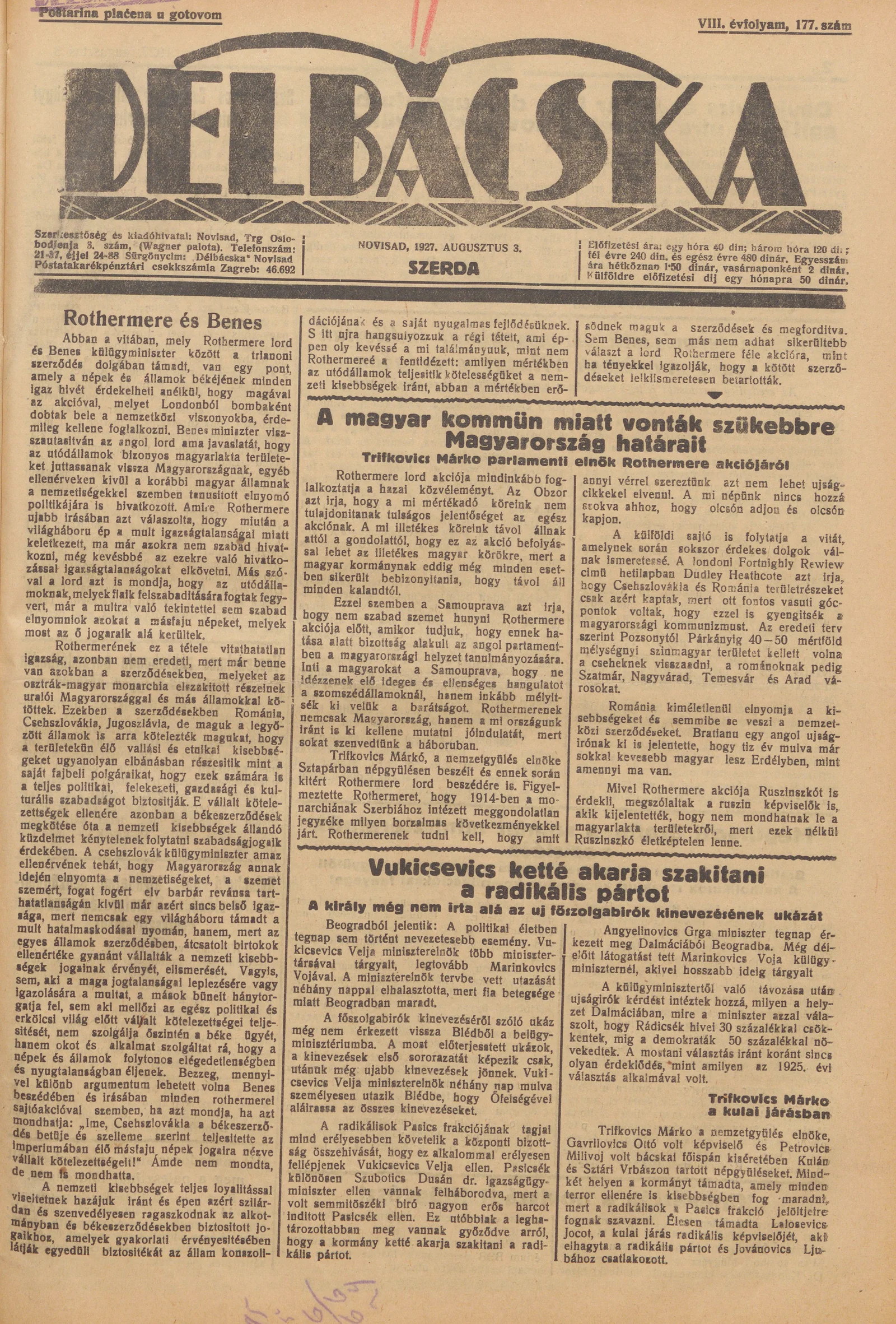 Délbácska, 8. évf. 1927. augusztus 3. 177. sz.