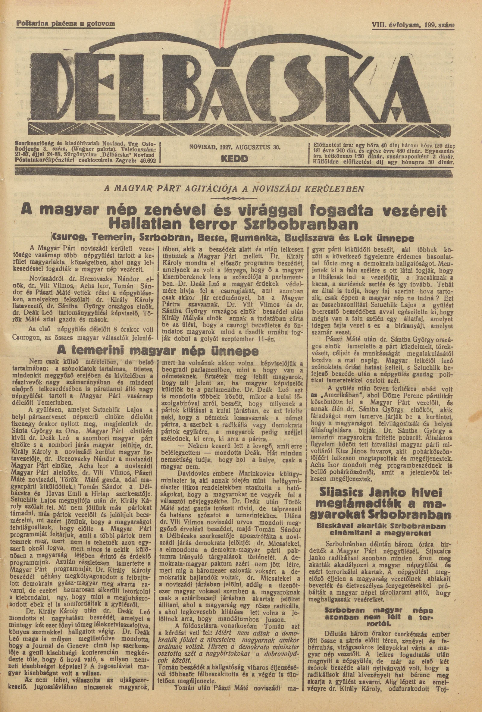 Délbácska, 8. évf. 1927. augusztus 30. 199. sz.