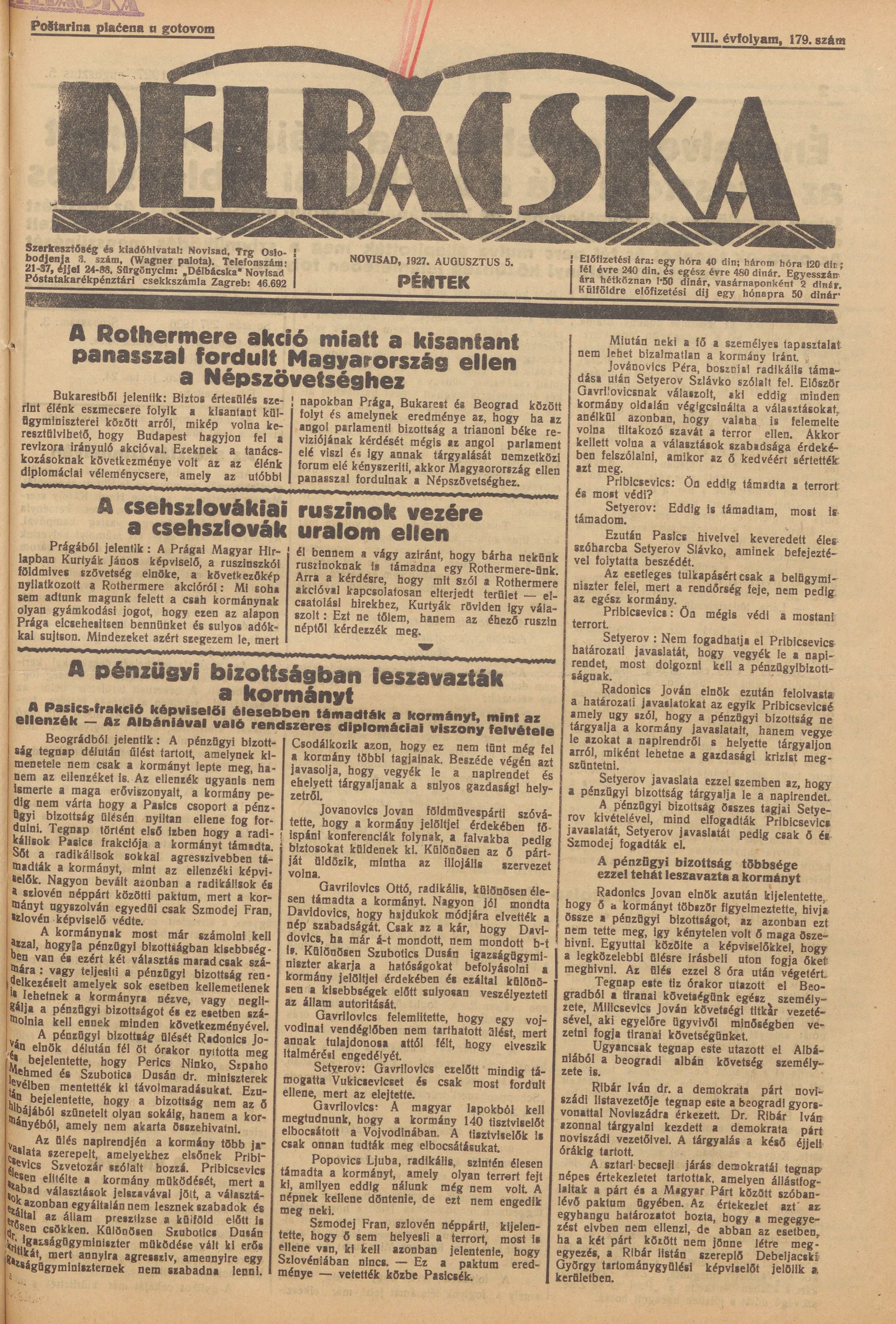 Délbácska, 8. évf. 1927. augusztus 5. 179. sz.