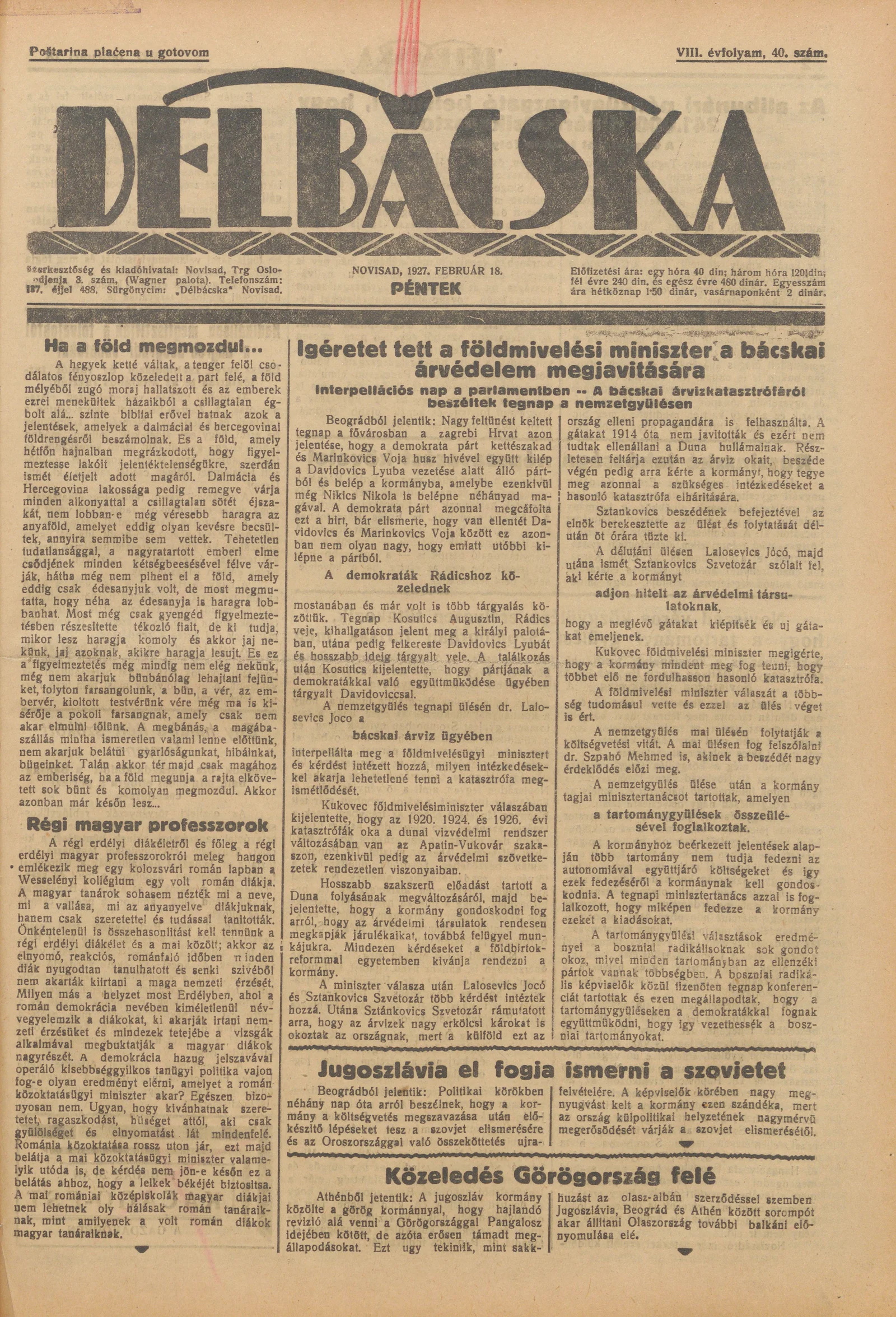 Délbácska, 8. évf. 1927. február 18. 40. sz.