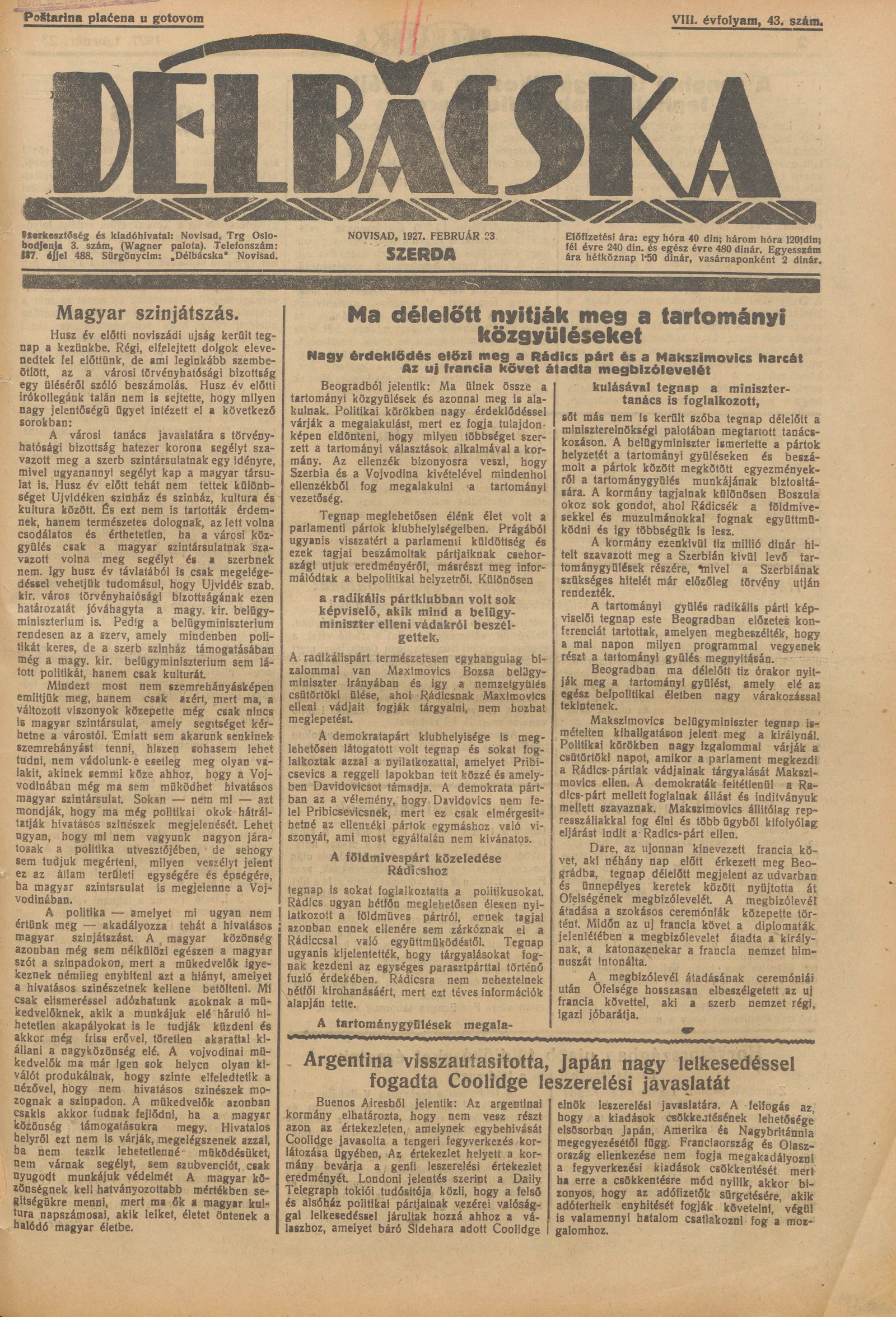 Délbácska, 8. évf. 1927. február 23. 43. sz.