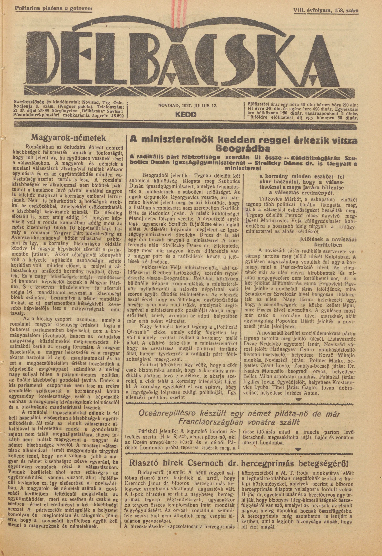 Délbácska, 8. évf. 1927. július 12. 158. sz.