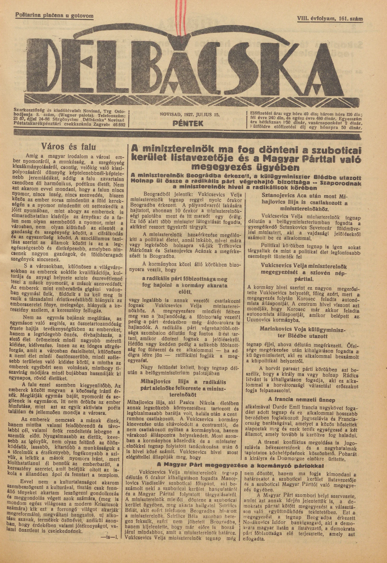 Délbácska, 8. évf. 1927. július 15. 161. sz.