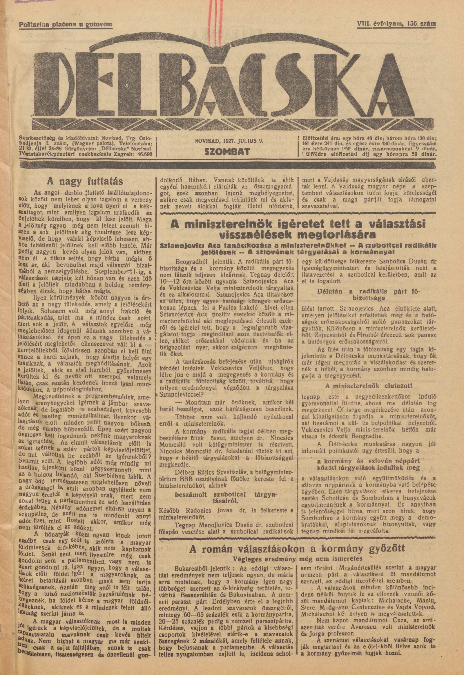 Délbácska, 8. évf. 1927. július 9. 156. sz.