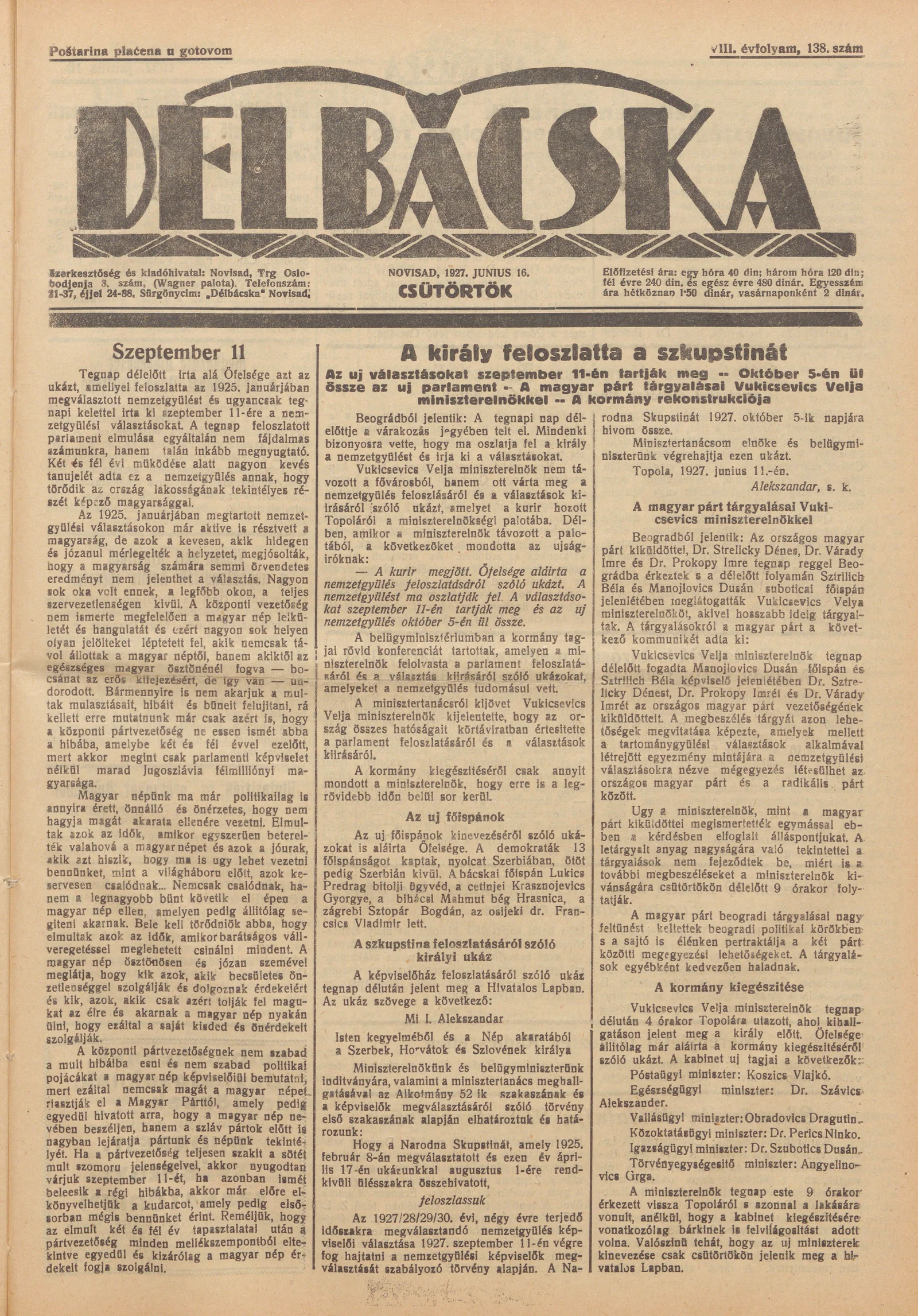 Délbácska, 8. évf. 1927. június 16. 138. sz.