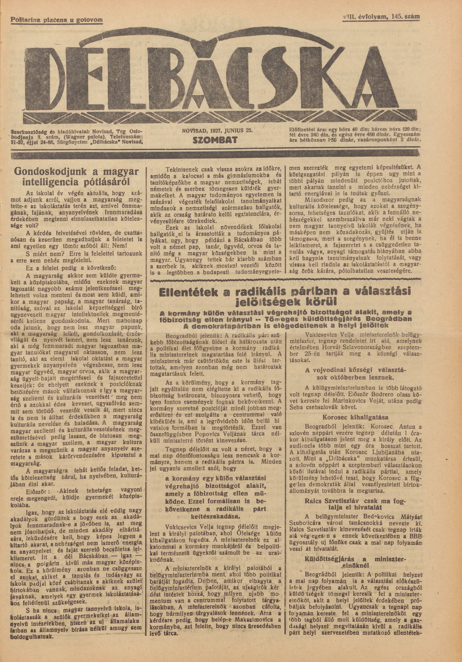 Délbácska, 8. évf. 1927. június 25. 145. sz.