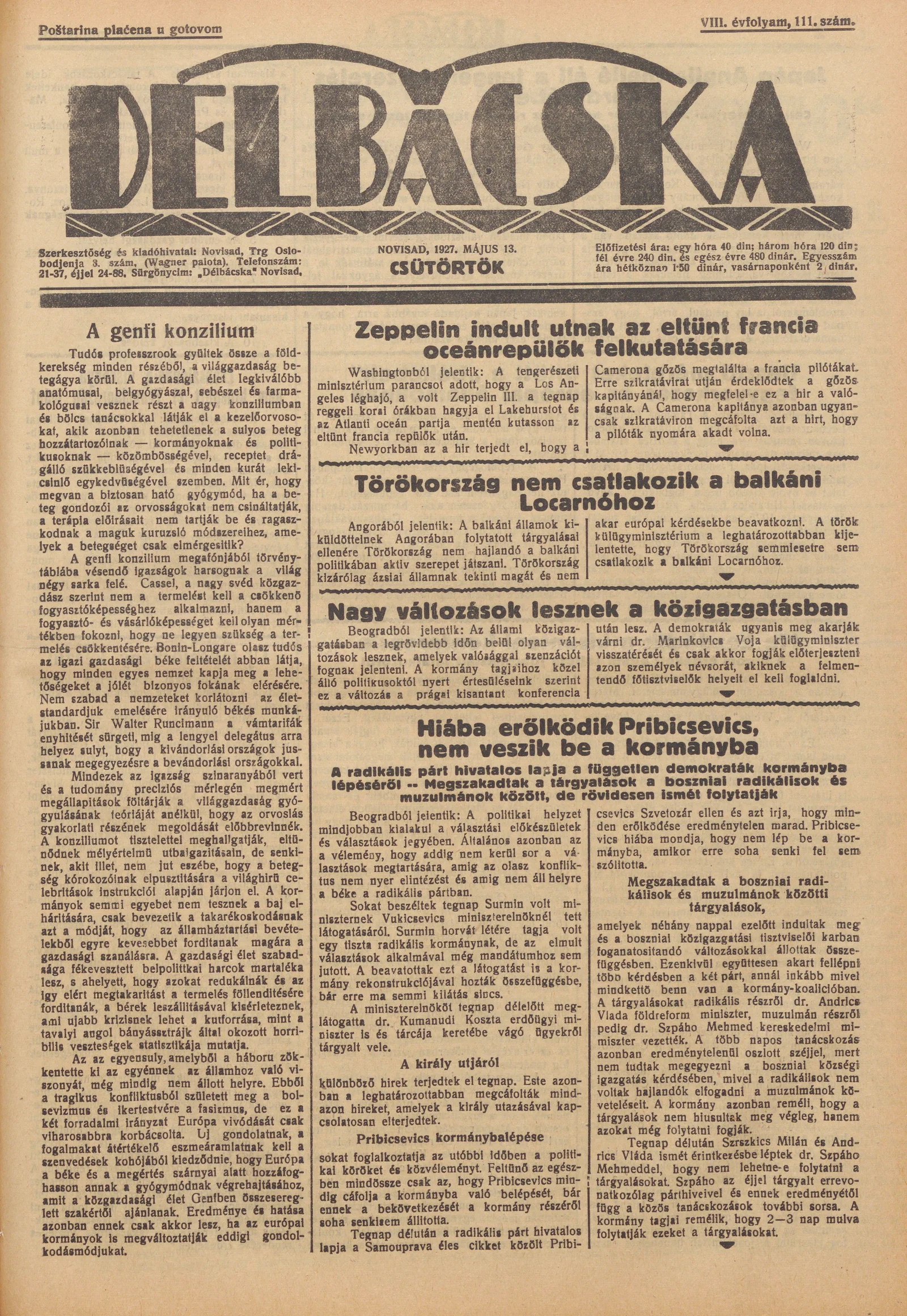 Délbácska, 8. évf. 1927. május 13. 111. sz.