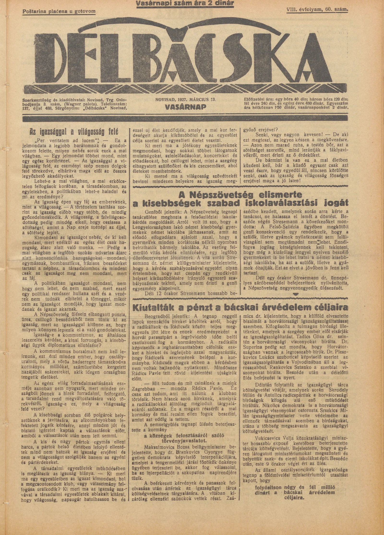 Délbácska, 8. évf. 1927. március 13. 60. sz.