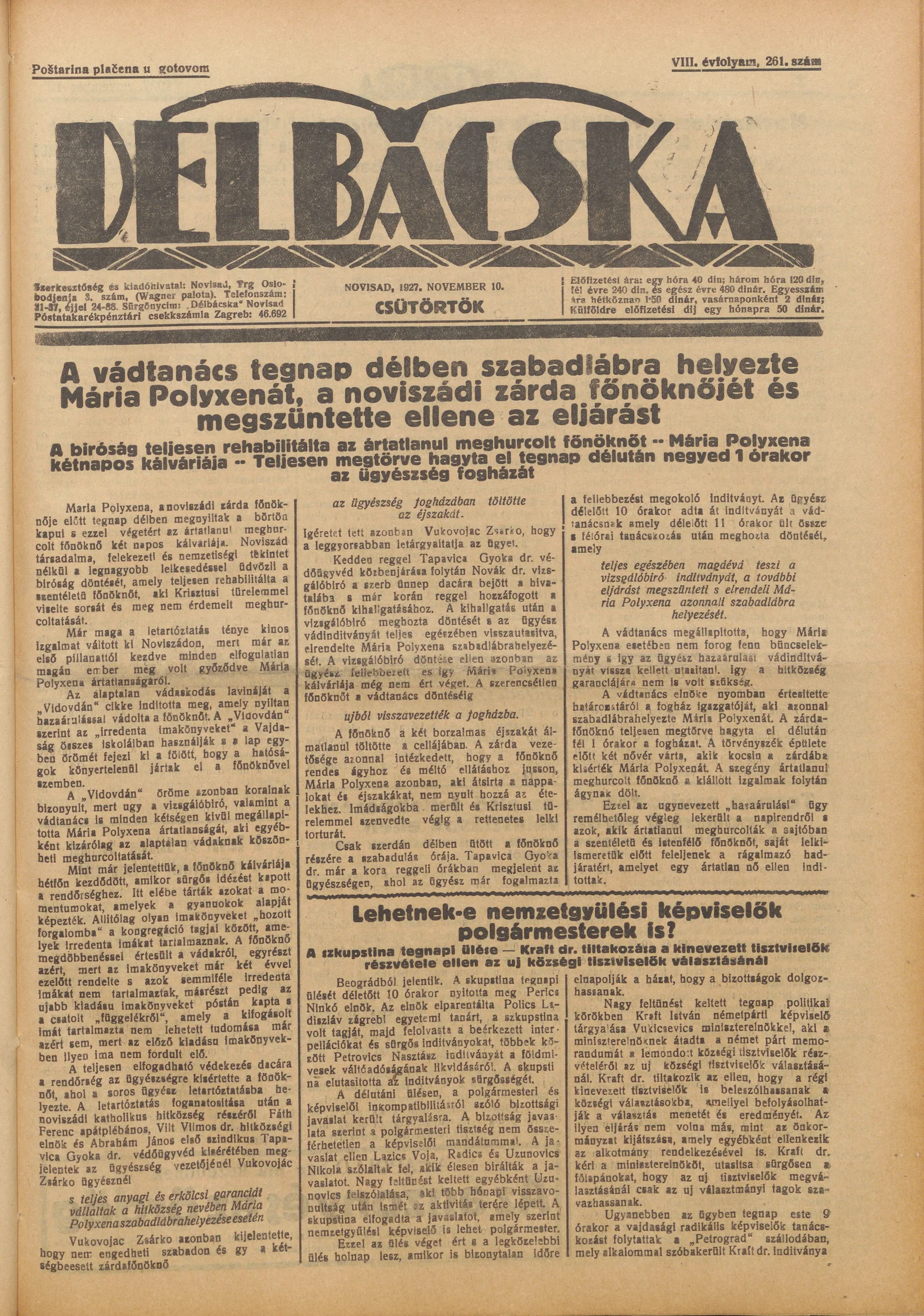 Délbácska, 8. évf. 1927. november 10. 261. sz.