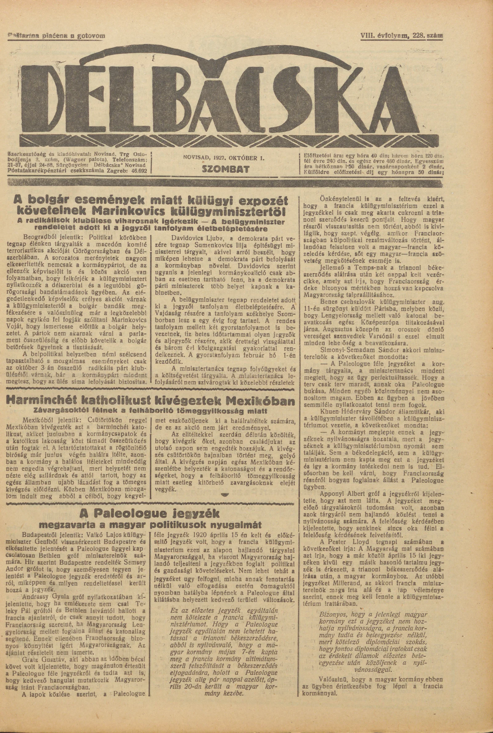 Délbácska, 8. évf. 1927. október 1. 228. sz.