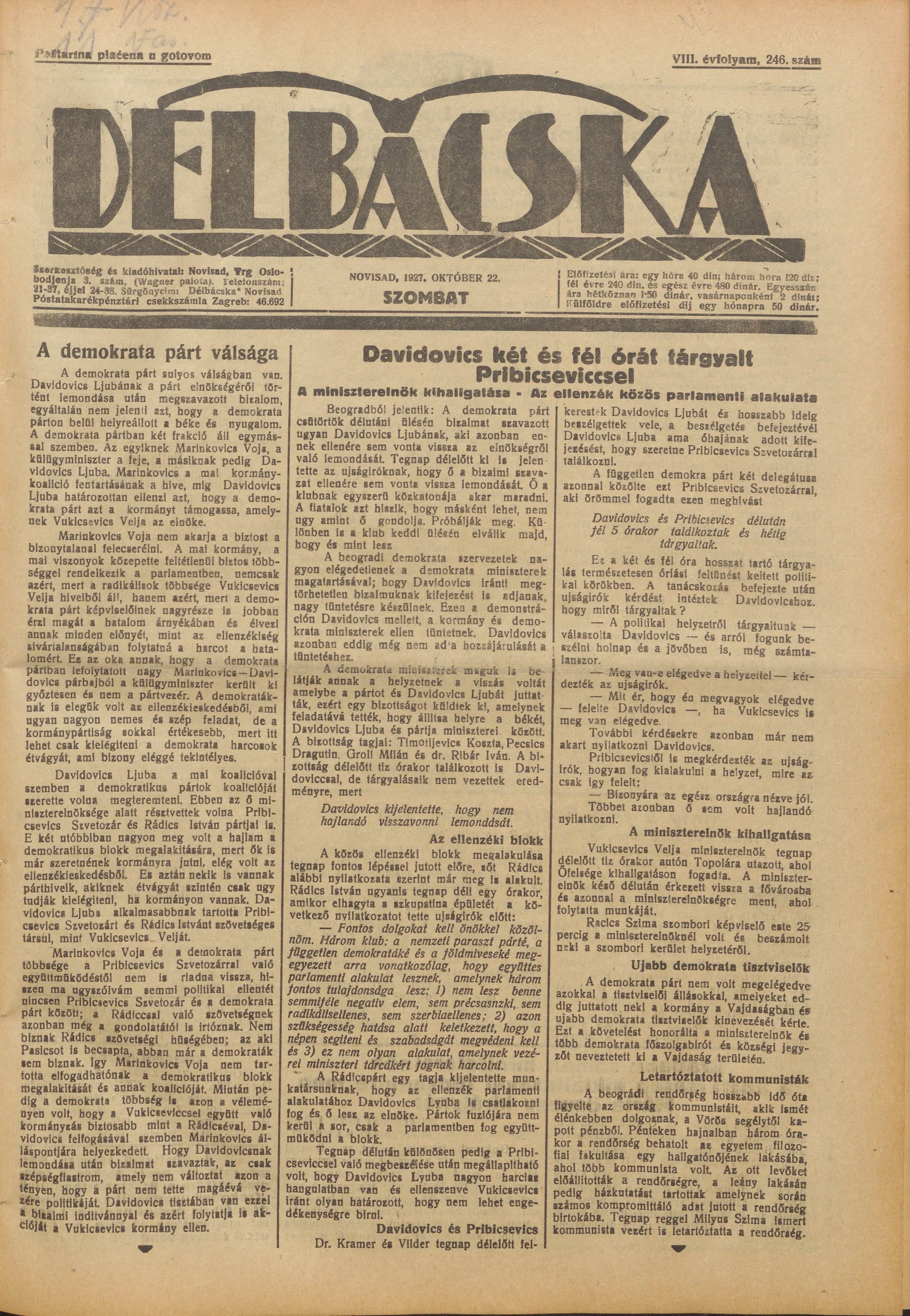 Délbácska, 8. évf. 1927. október 22. 246. sz.