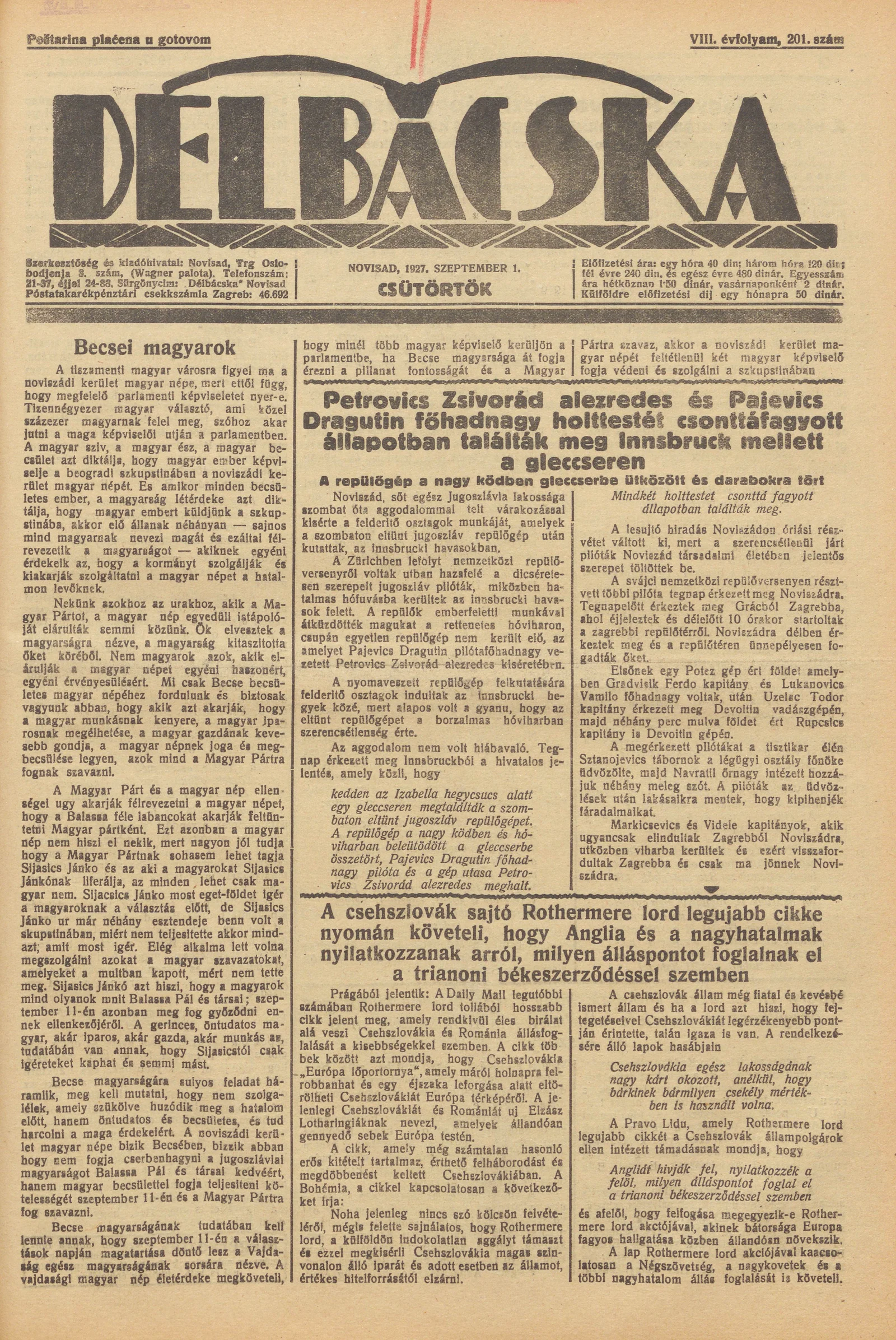 Délbácska, 8. évf. 1927. szeptember 1. 201. sz.