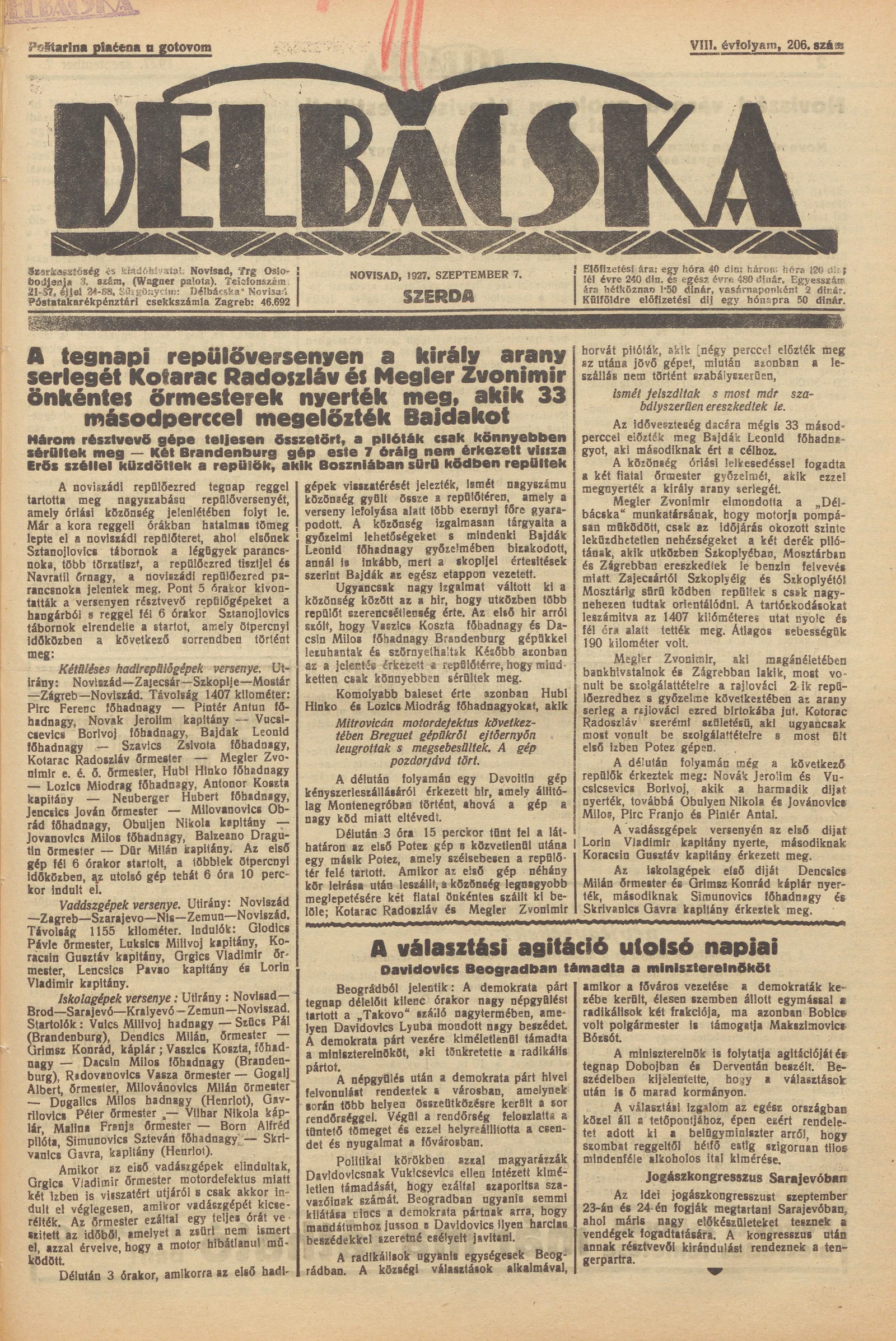 Délbácska, 8. évf. 1927. szeptember 7. 206. sz.