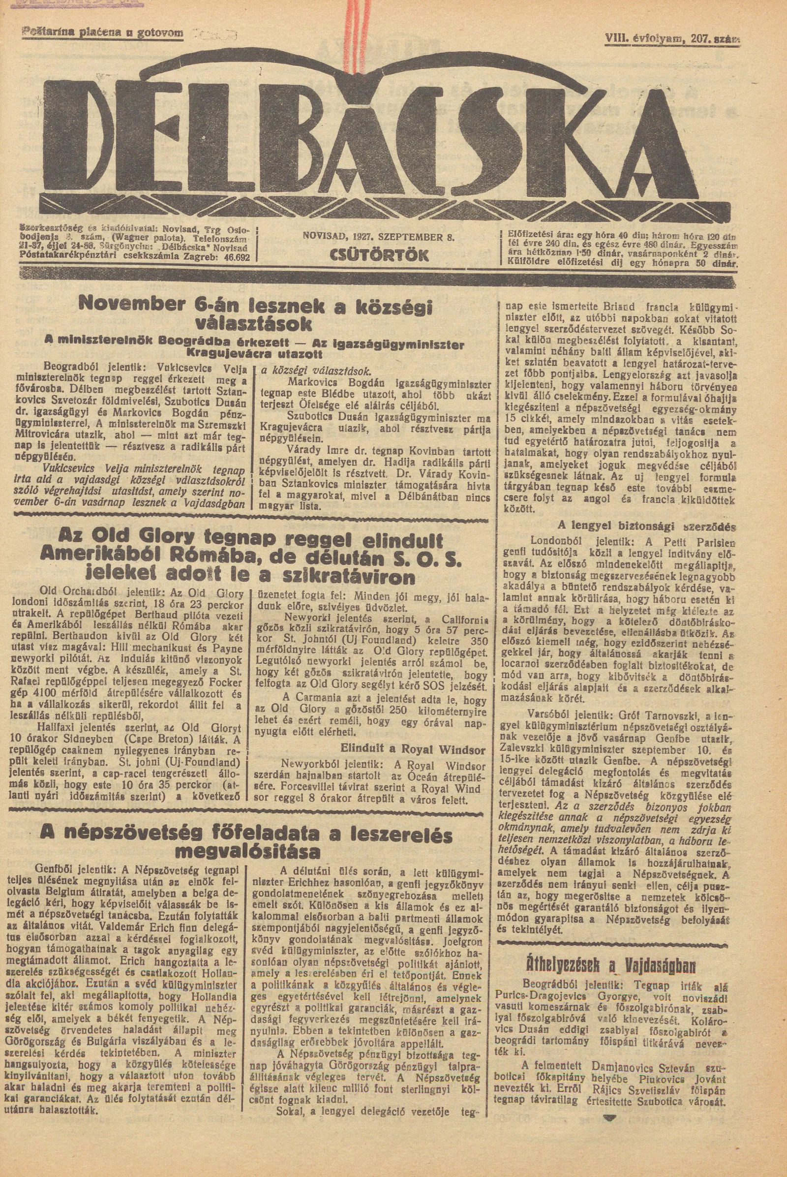 Délbácska, 8. évf. 1927. szeptember 8. 207. sz.