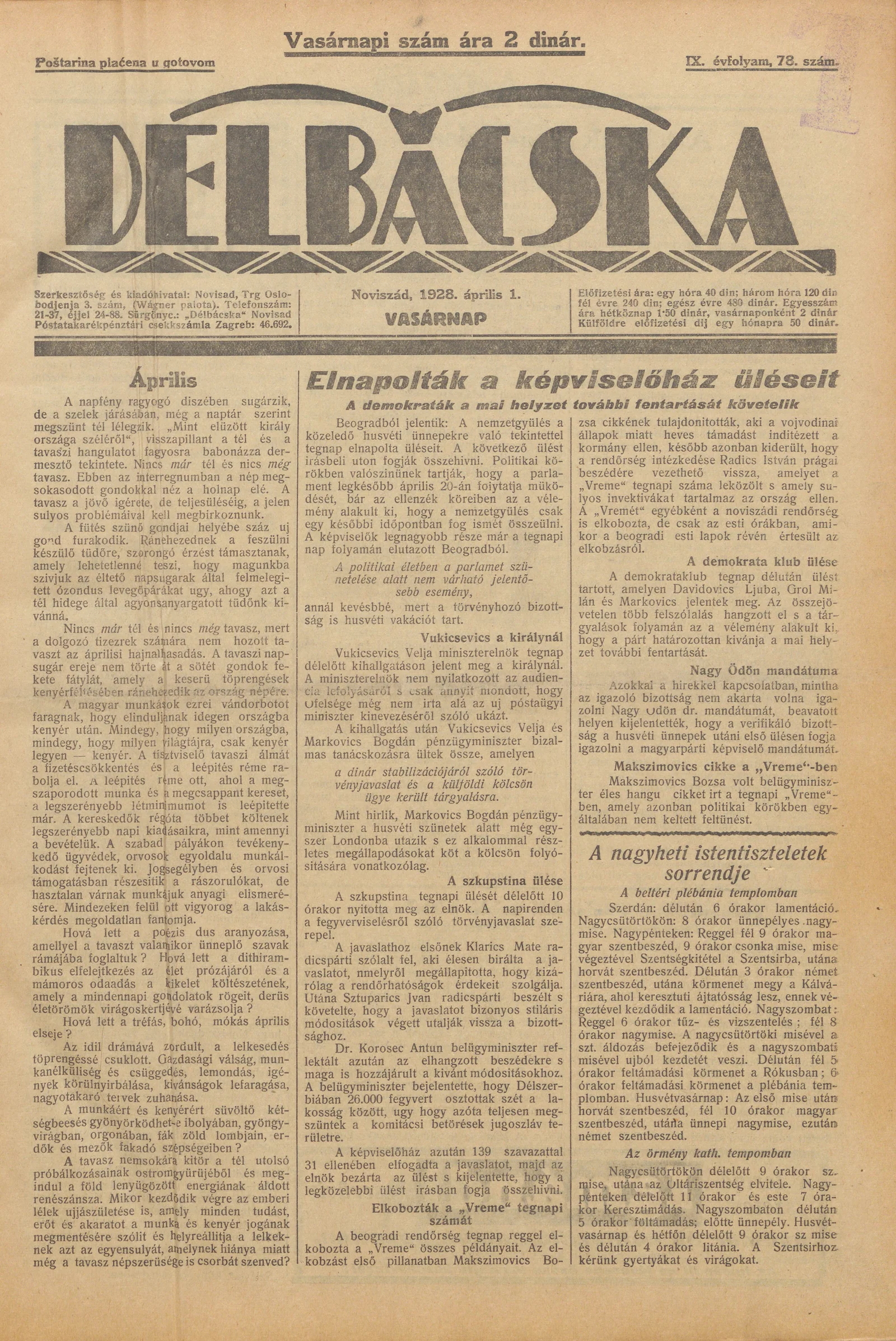 Délbácska, 9. évf. 1928. április 1. 78. sz.
