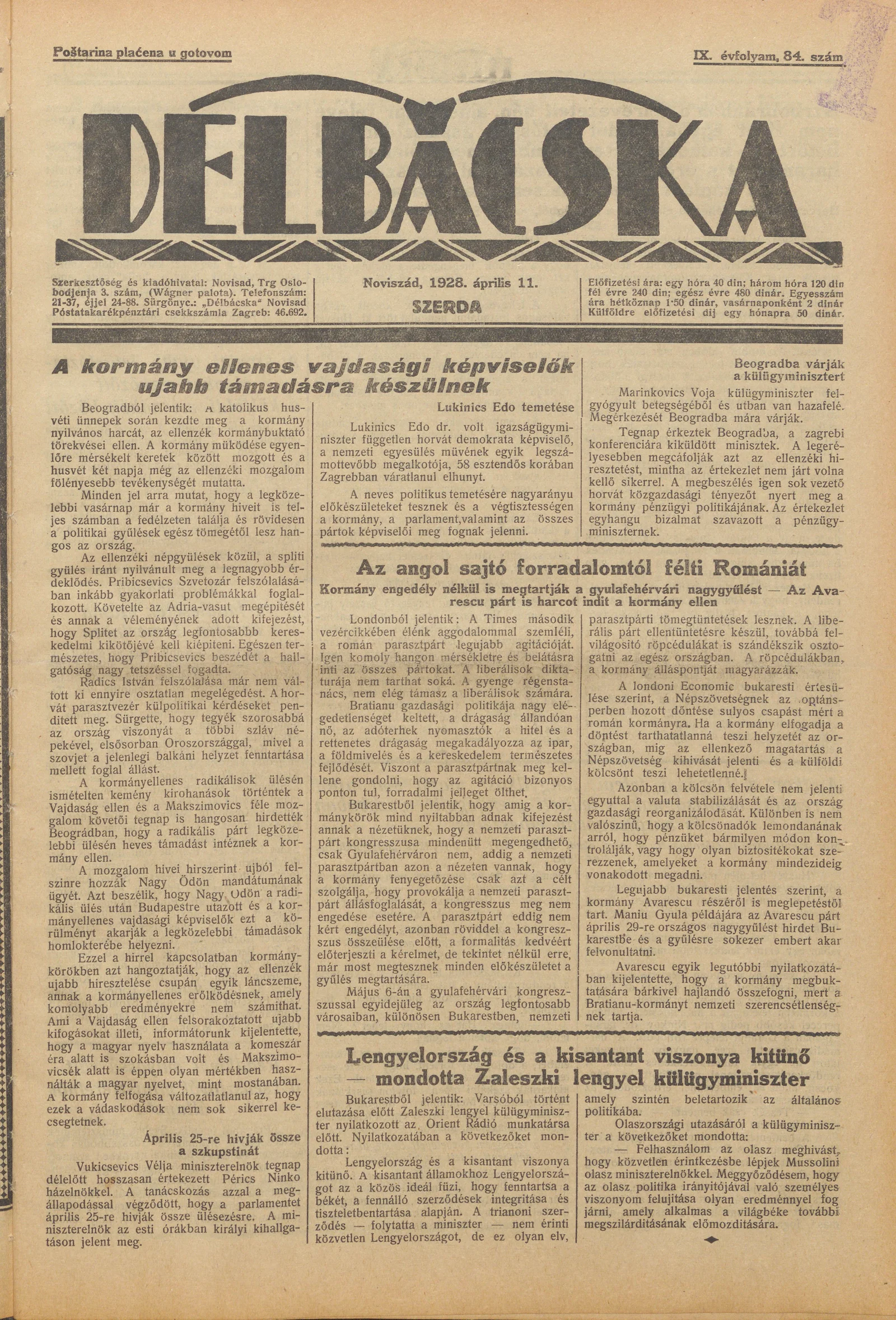 Délbácska, 9. évf. 1928. április 11. 84. sz.