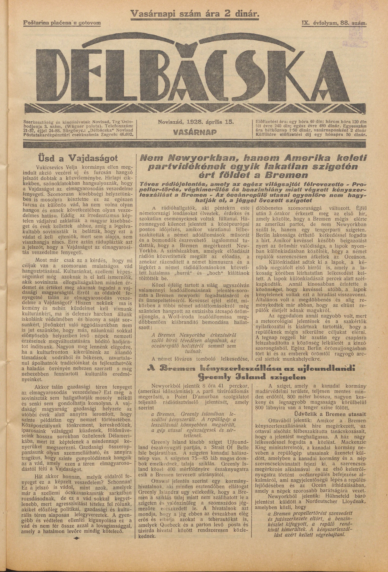 Délbácska, 9. évf. 1928. április 15. 88. sz.