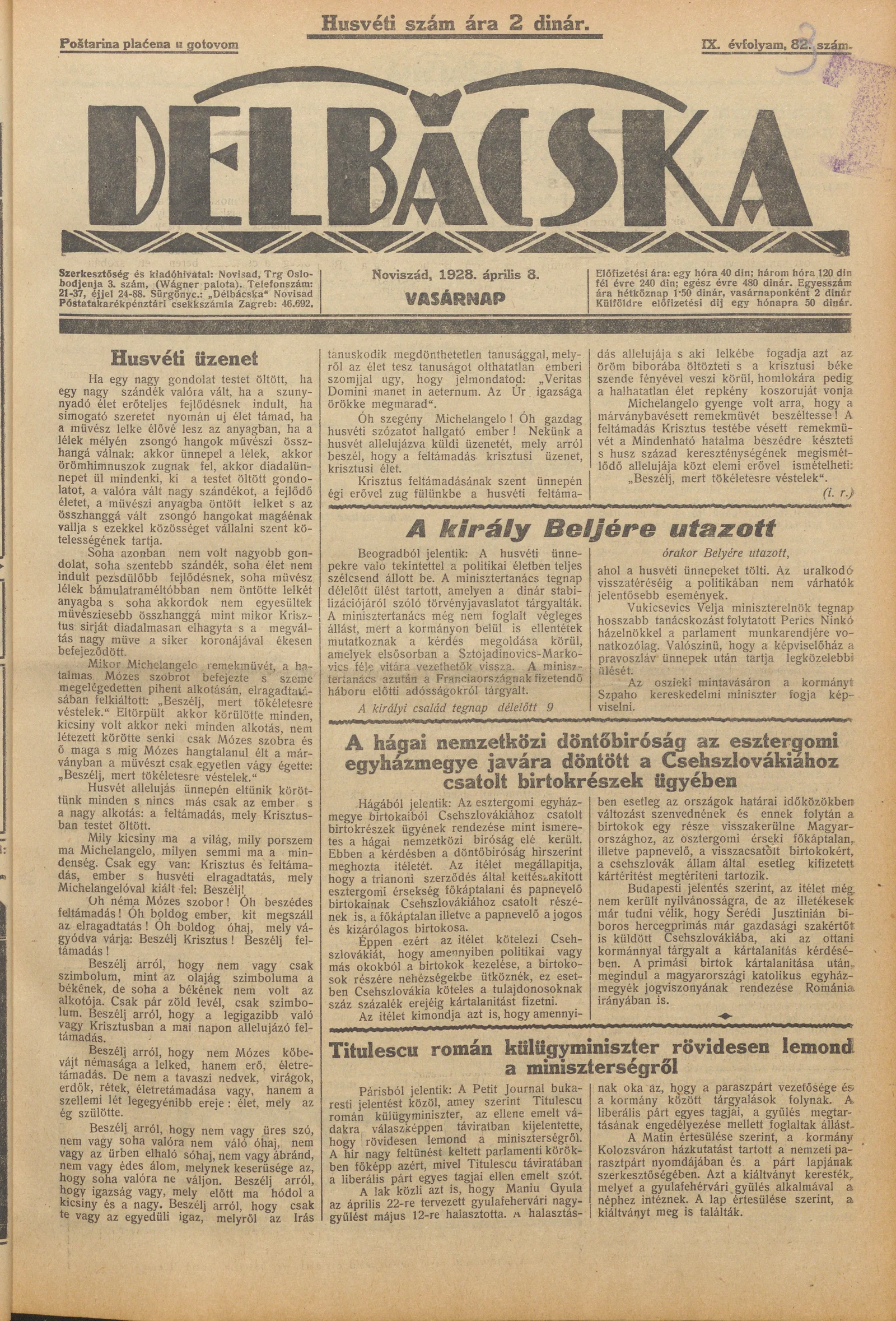 Délbácska, 9. évf. 1928. április 8. 83. sz.