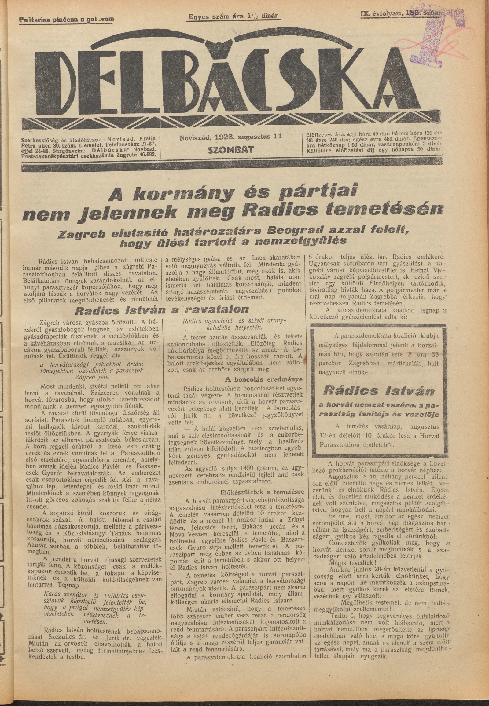 Délbácska, 9. évf. 1928. augusztus 11. 185. sz.