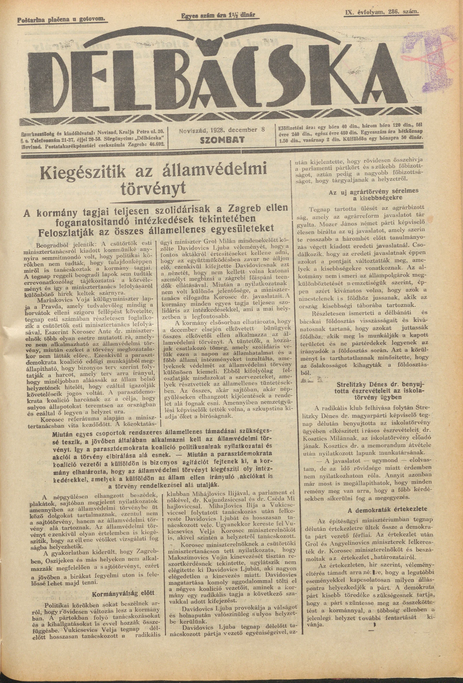Délbácska, 9. évf. 1928. december 8. 286. sz.
