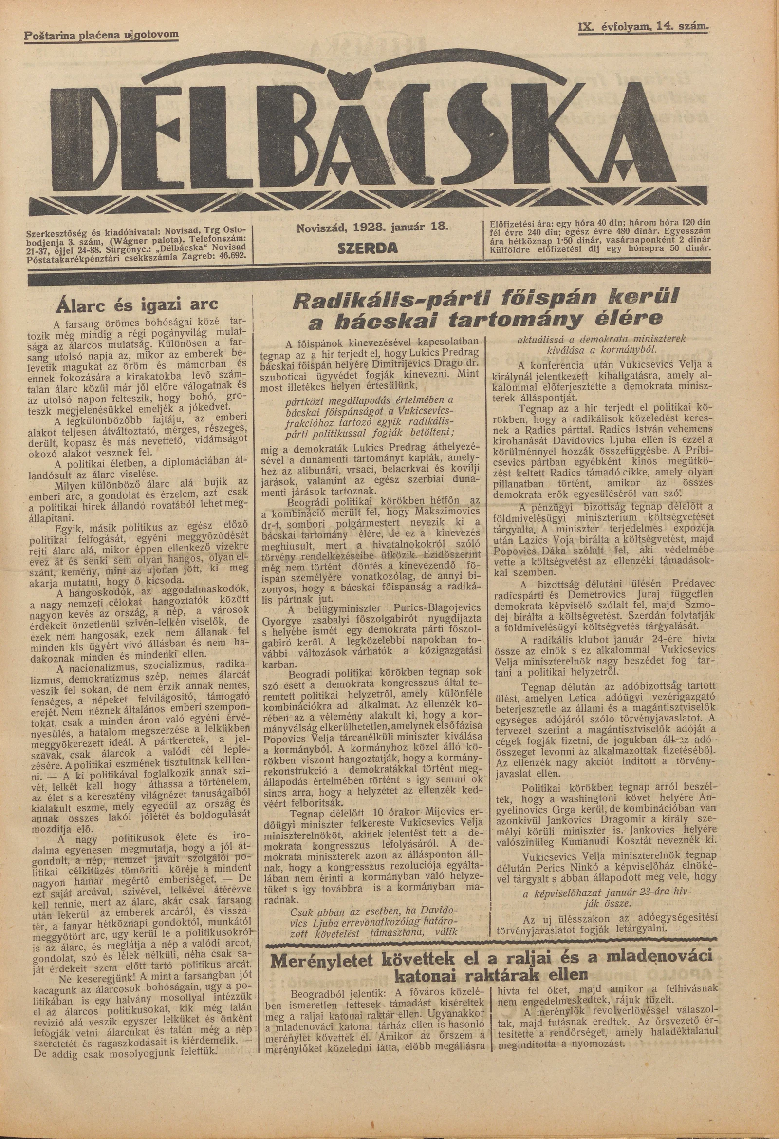 Délbácska, 9. évf. 1928. január 18. 14. sz.