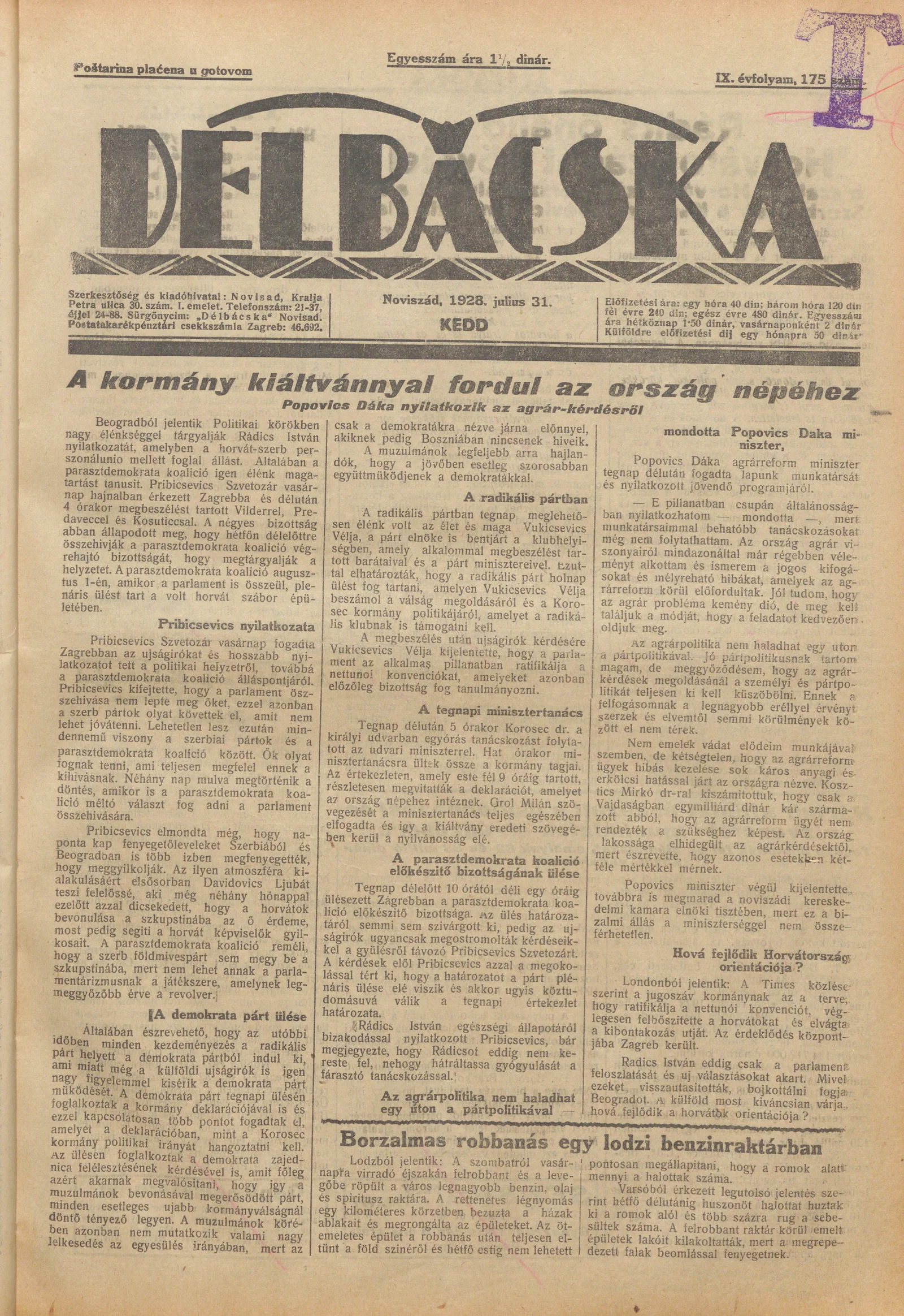 Délbácska, 9. évf. 1928. július 31. 175. sz.