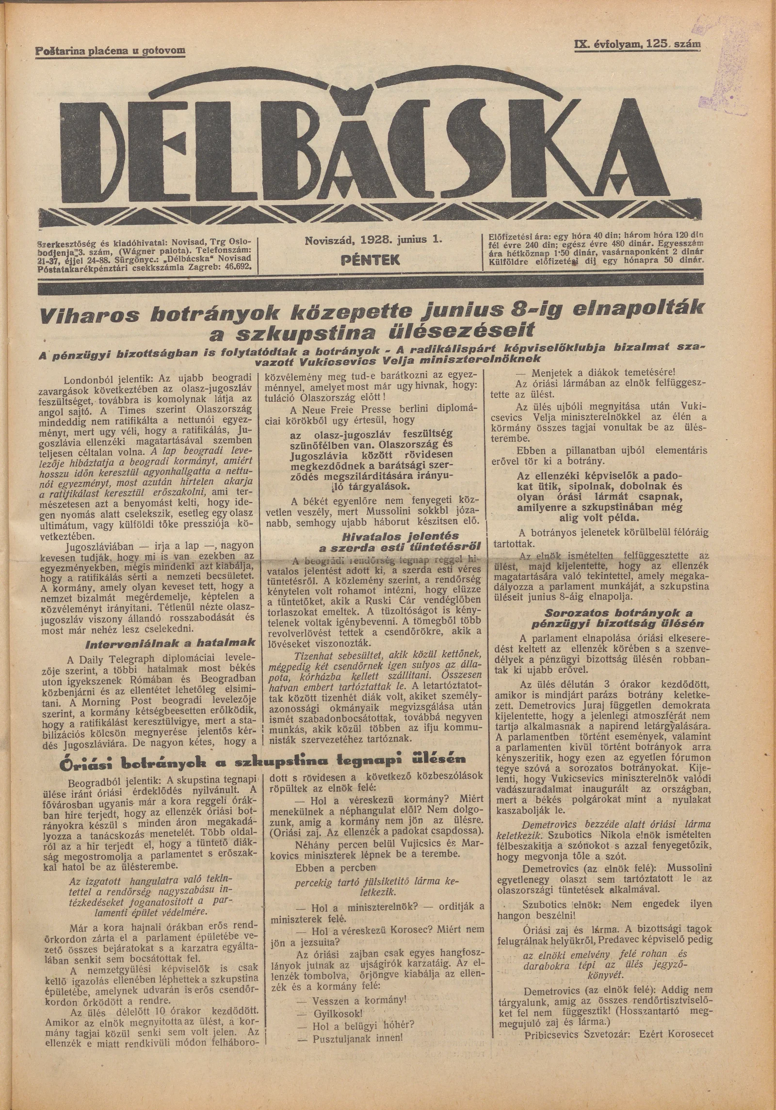 Délbácska, 9. évf. 1928. június 1. 125. sz.