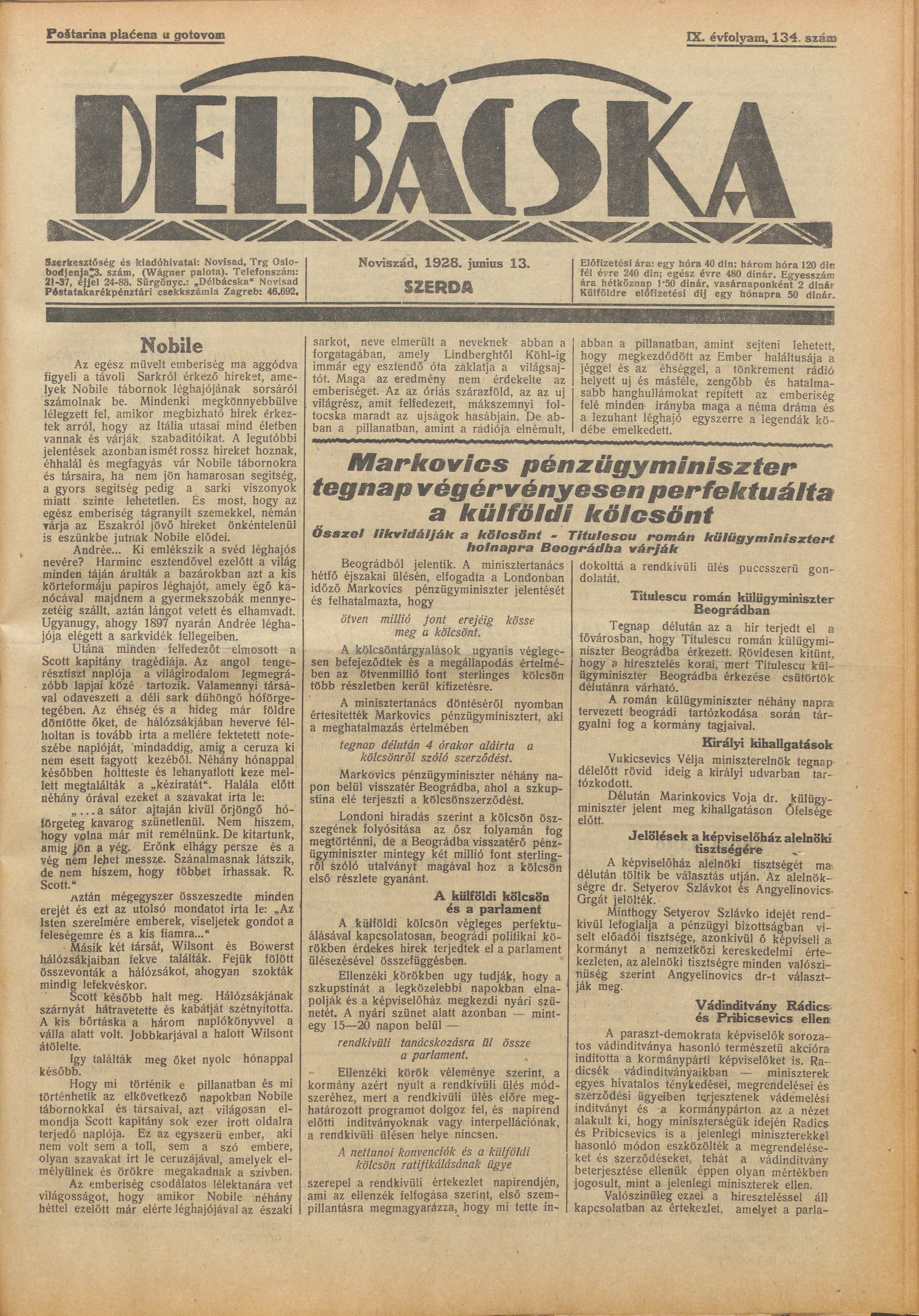 Délbácska, 9. évf. 1928. június 13. 134. sz.
