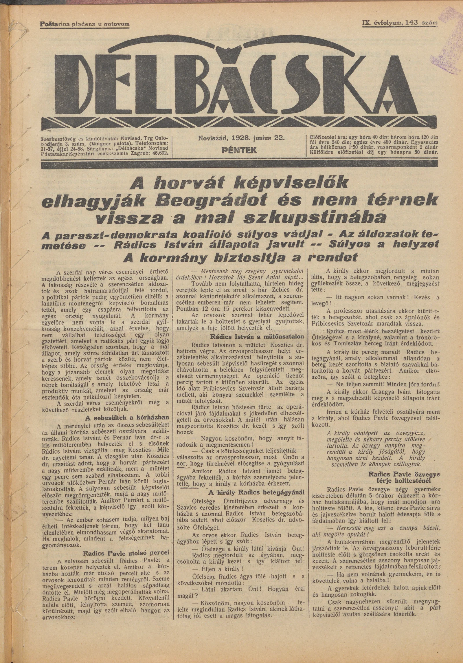 Délbácska, 9. évf. 1928. június 22. 143. sz.