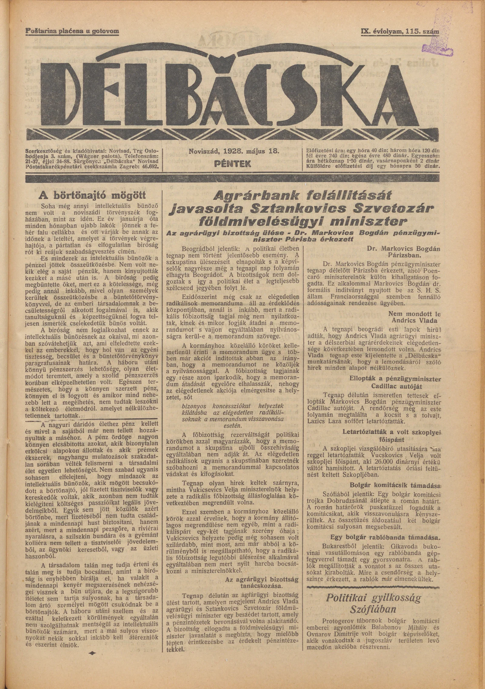 Délbácska, 9. évf. 1928. május 18. 115. sz.