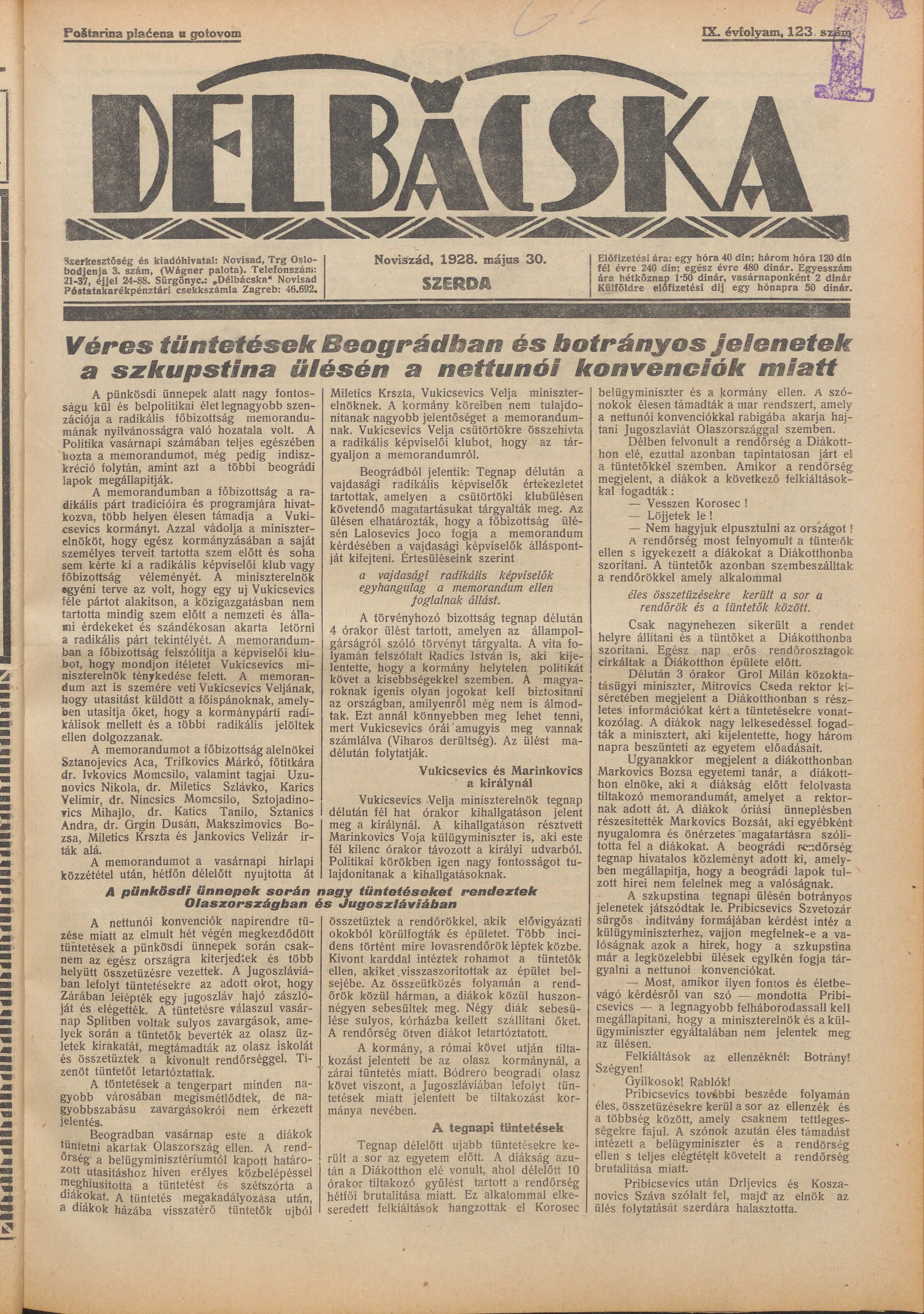 Délbácska, 9. évf. 1928. május 30. 123. sz.