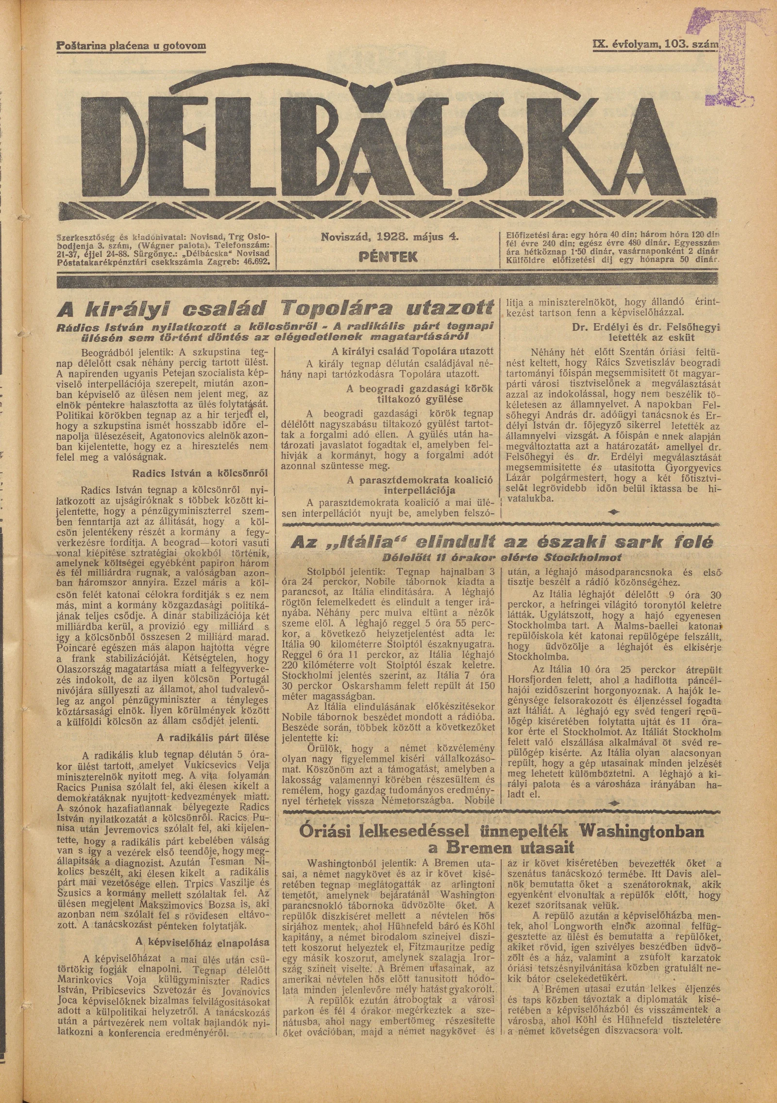 Délbácska, 9. évf. 1928. május 4. 103. sz.