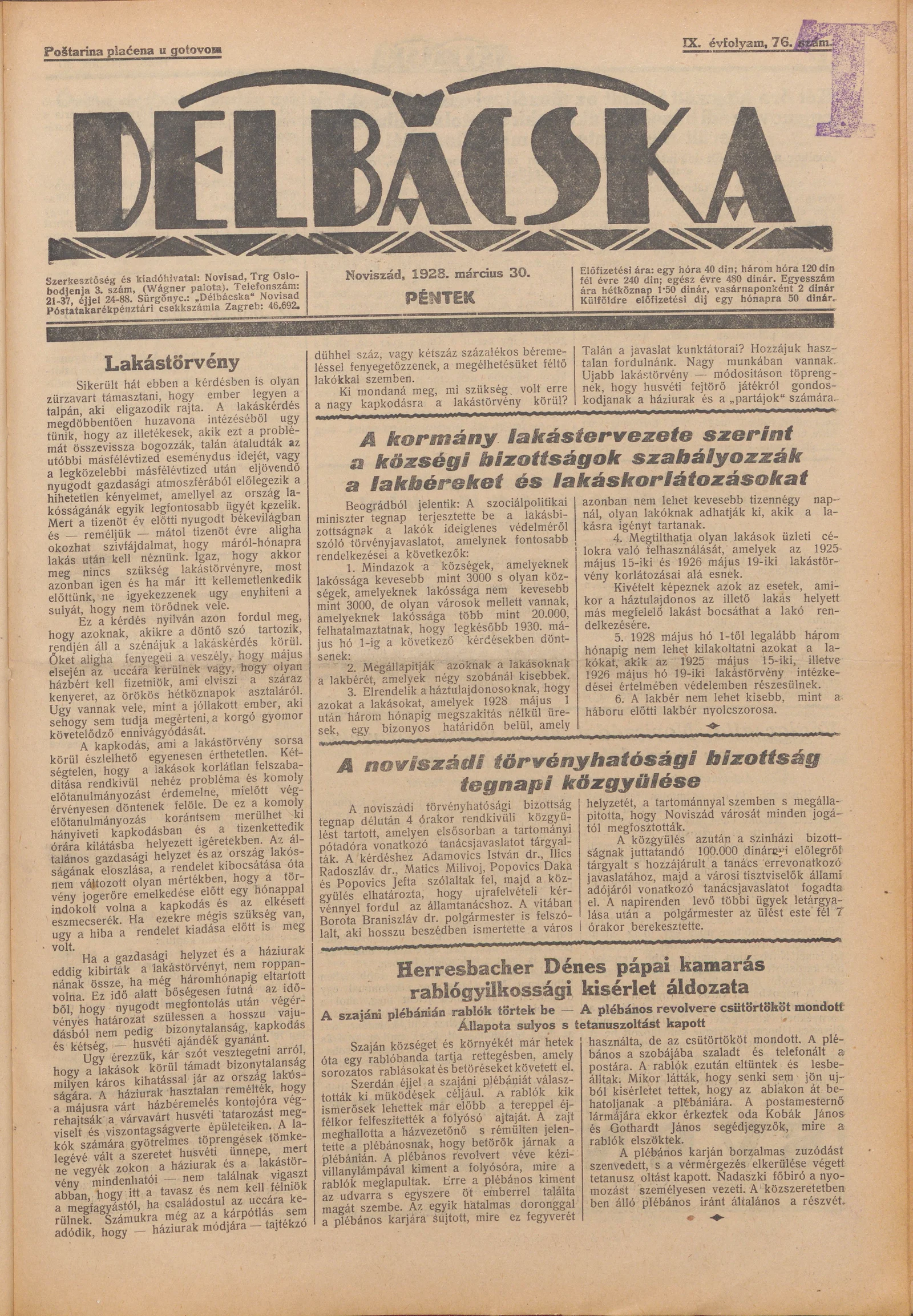 Délbácska, 9. évf. 1928. március 30. 76. sz.