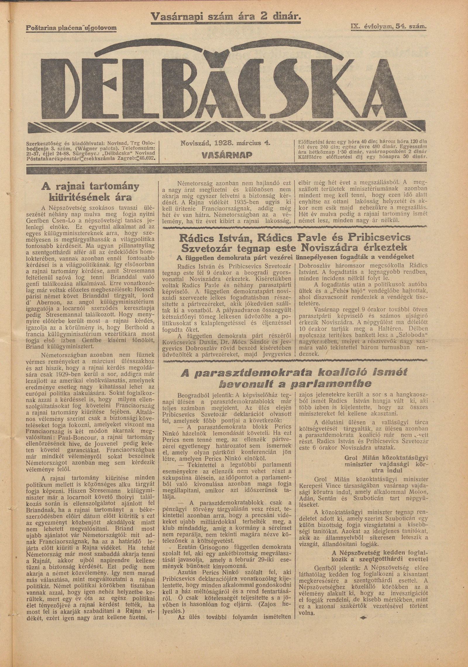Délbácska, 9. évf. 1928. március 4. 54. sz.