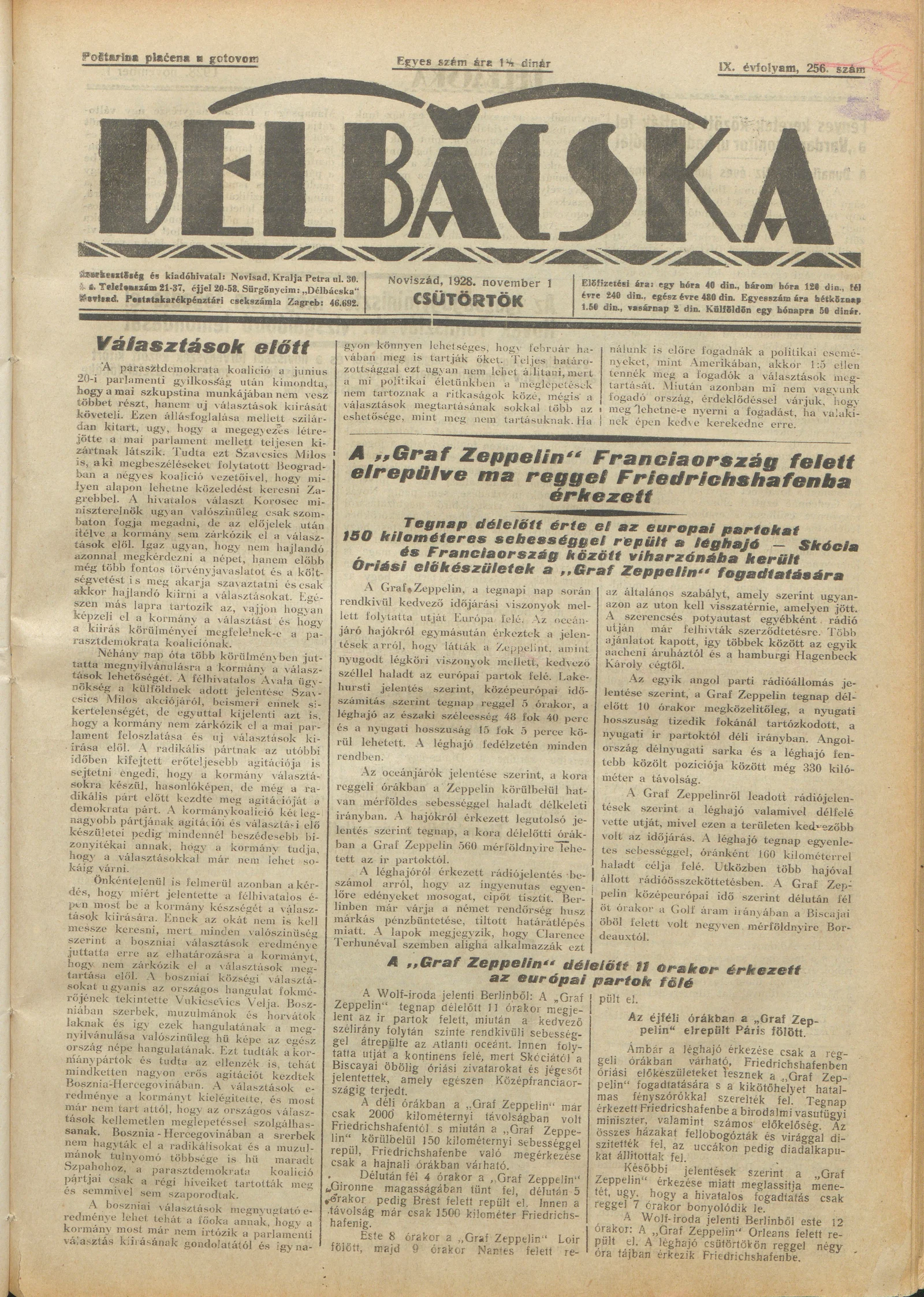 Délbácska, 9. évf. 1928. november 1. 256. sz.