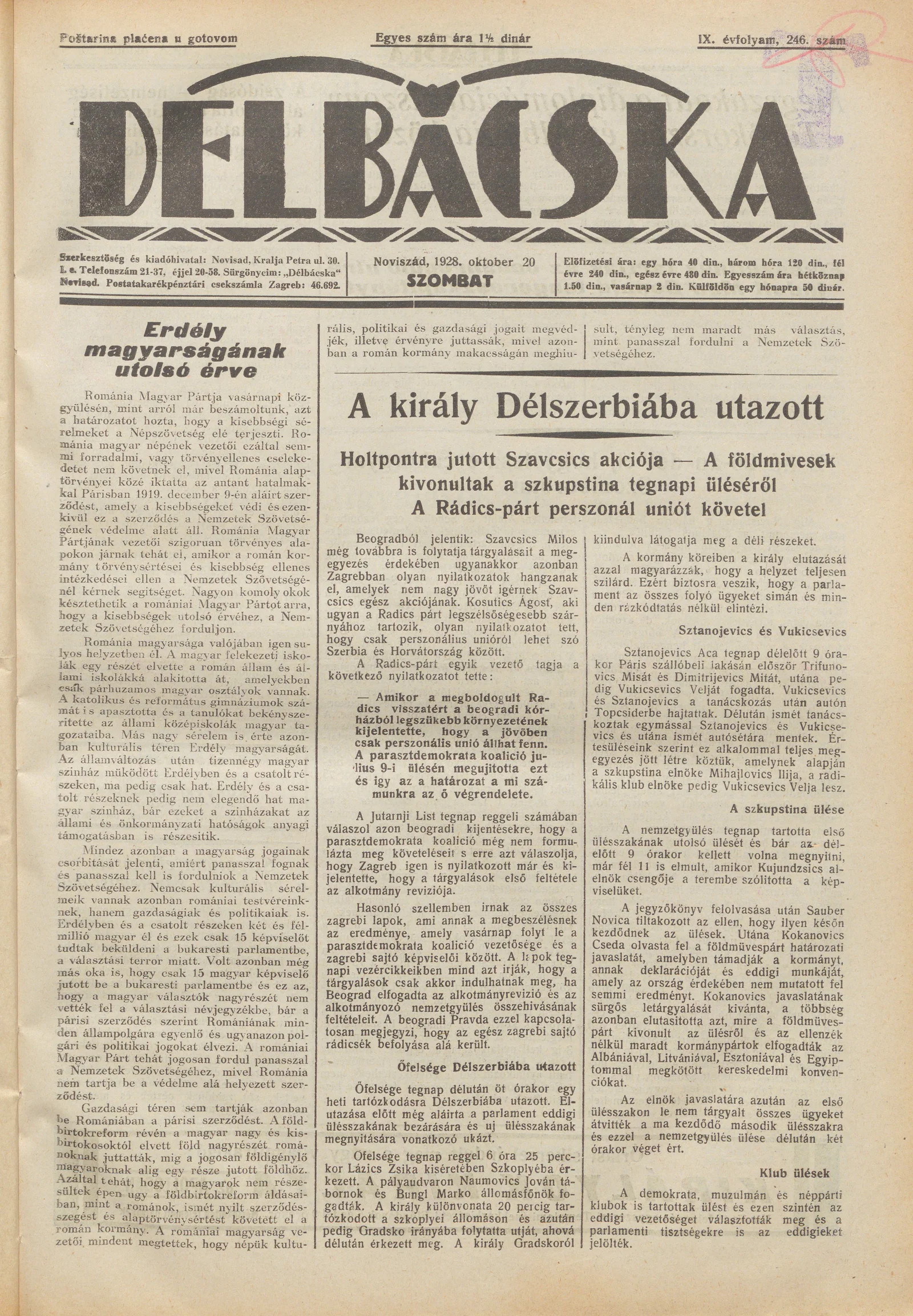 Délbácska, 9. évf. 1928. október 20. 246. sz.