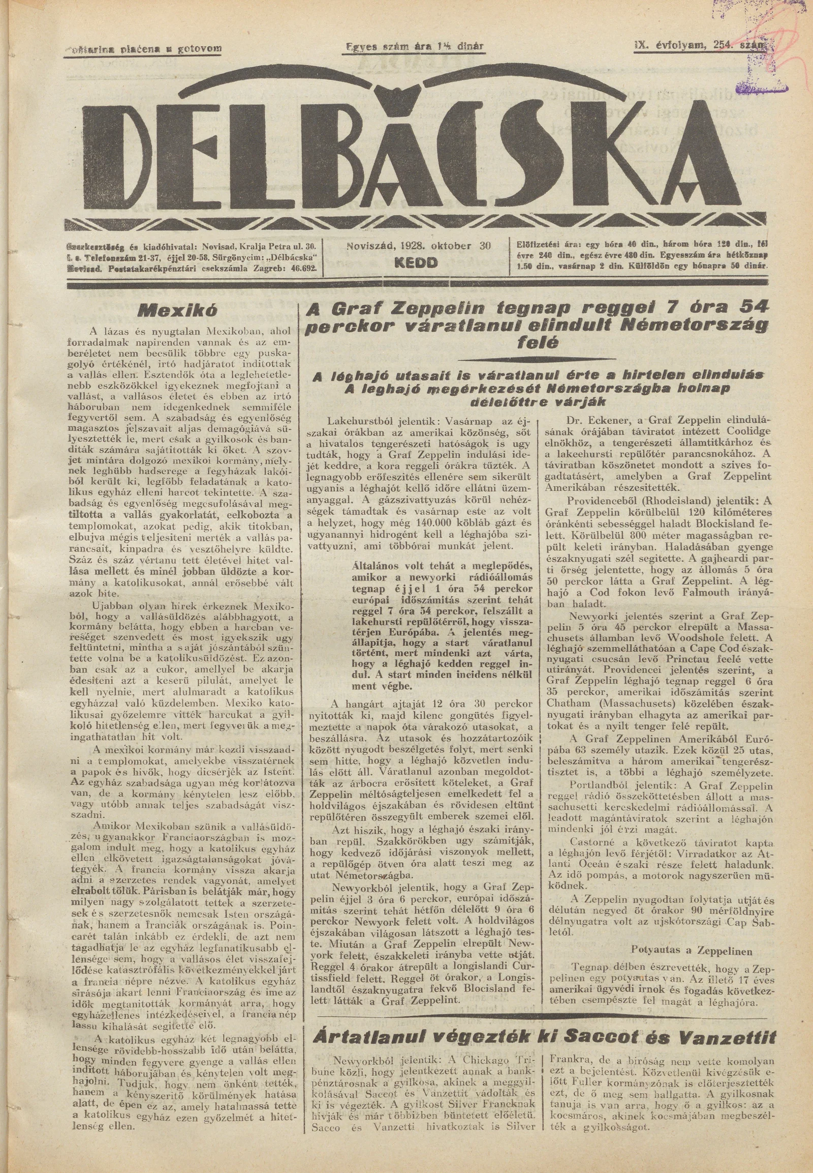 Délbácska, 9. évf. 1928. október 30. 254. sz.
