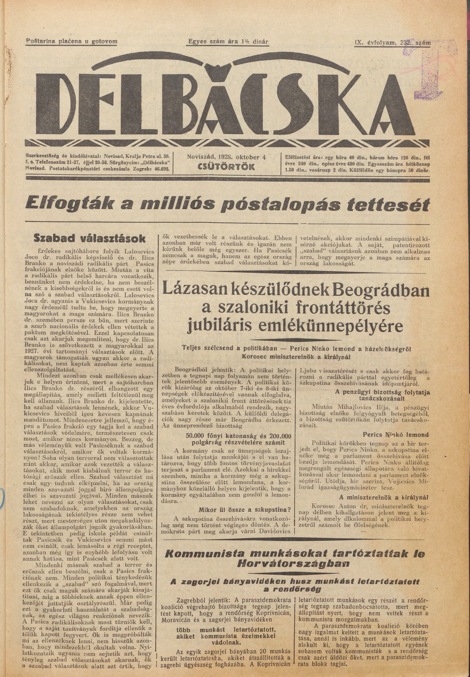Délbácska, 9. évf. 1928. október 4. 232. sz.