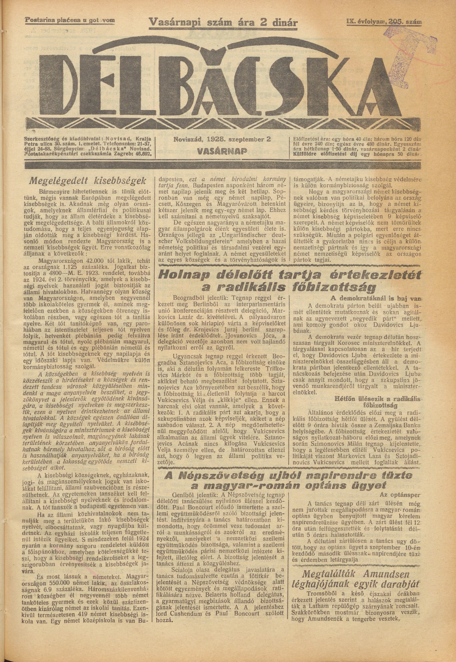 Délbácska, 9. évf. 1928. szeptember 2. 205. sz.