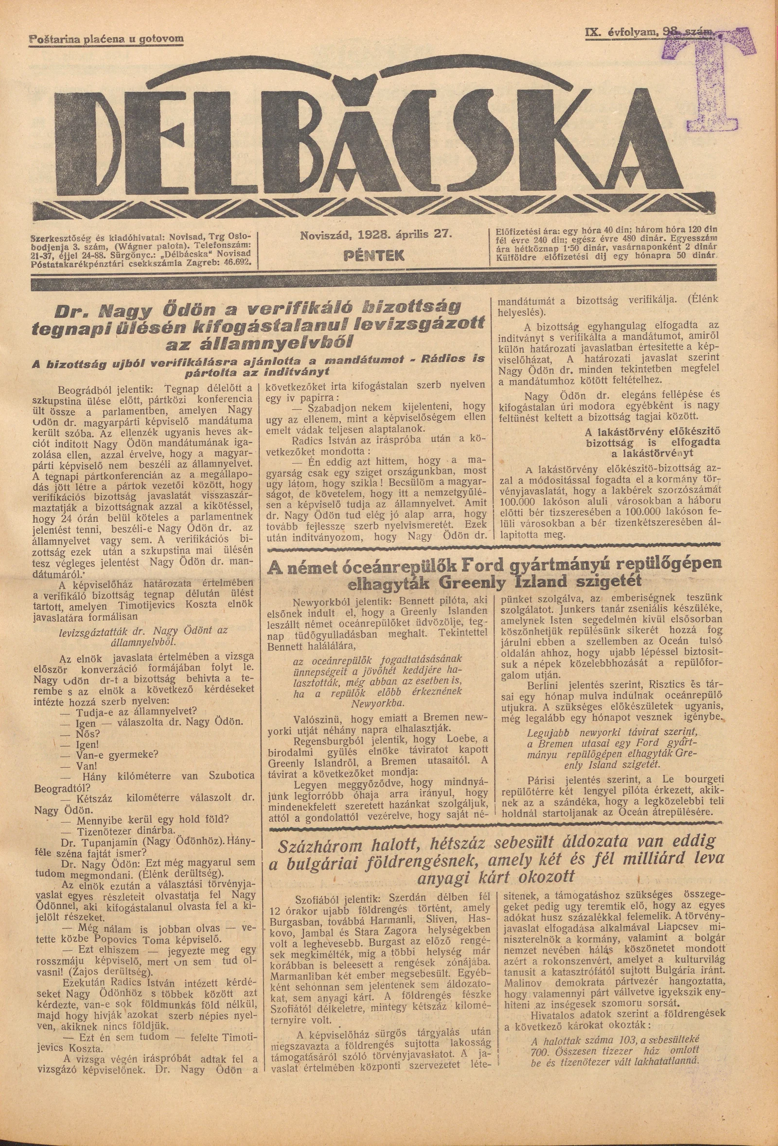 Délbácska 98. sz.