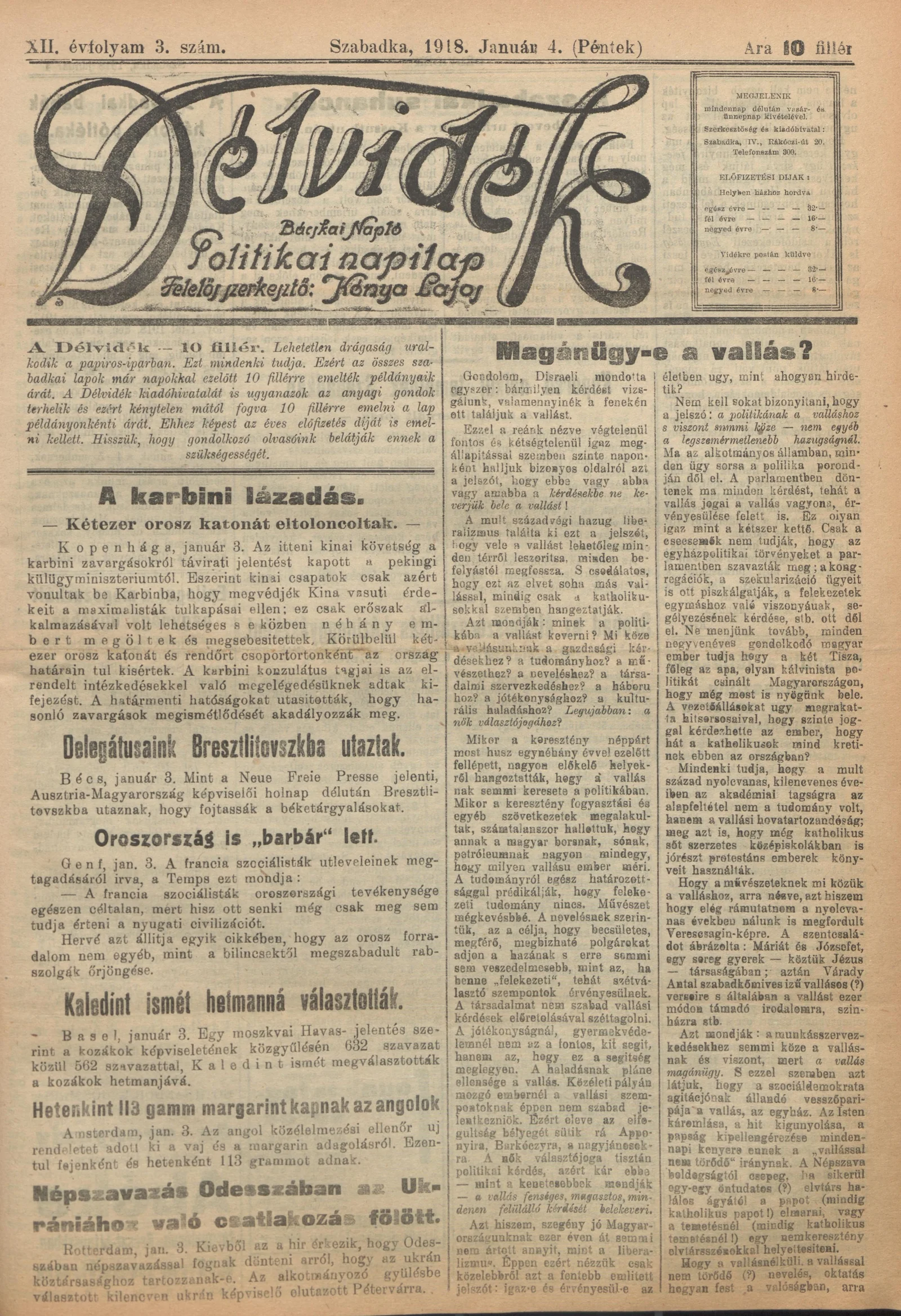 Délvidék, 12. évf. 1918. január 4. 3. sz.