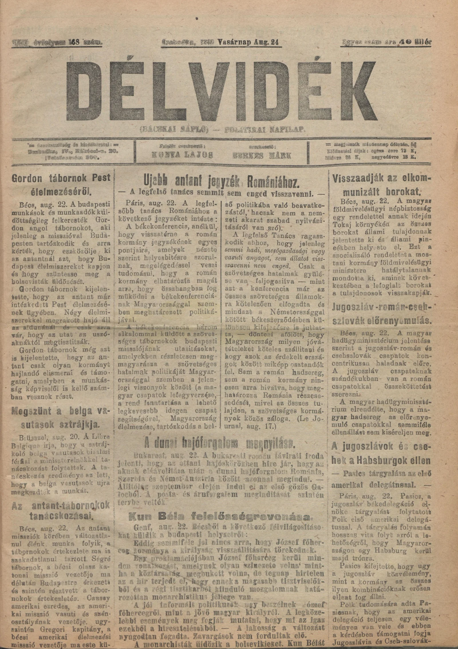Délvidék, 13. évf. 1919. augusztus 24. 168. sz.