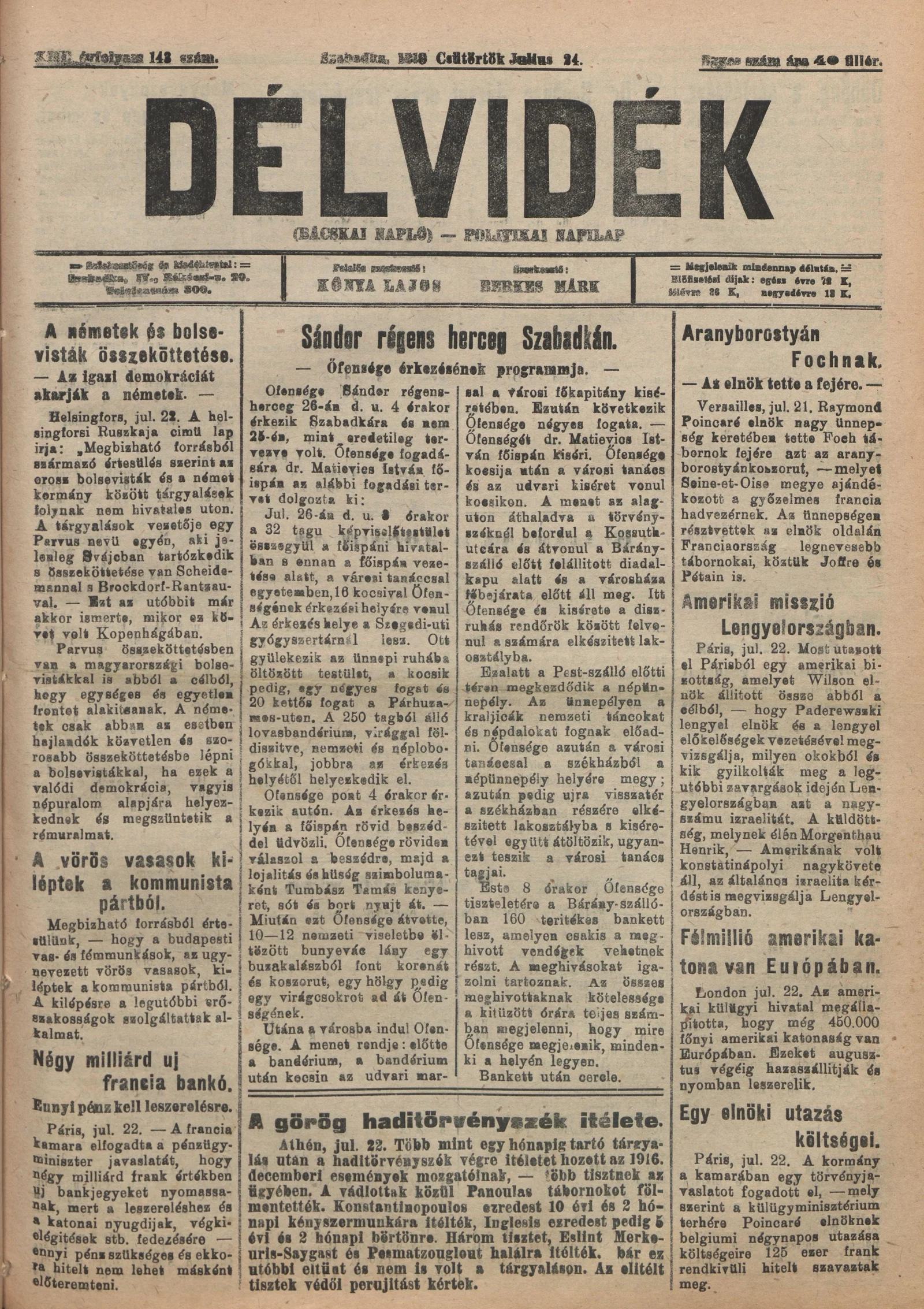 Délvidék, 13. évf. 1919. július 24. 143. sz.
